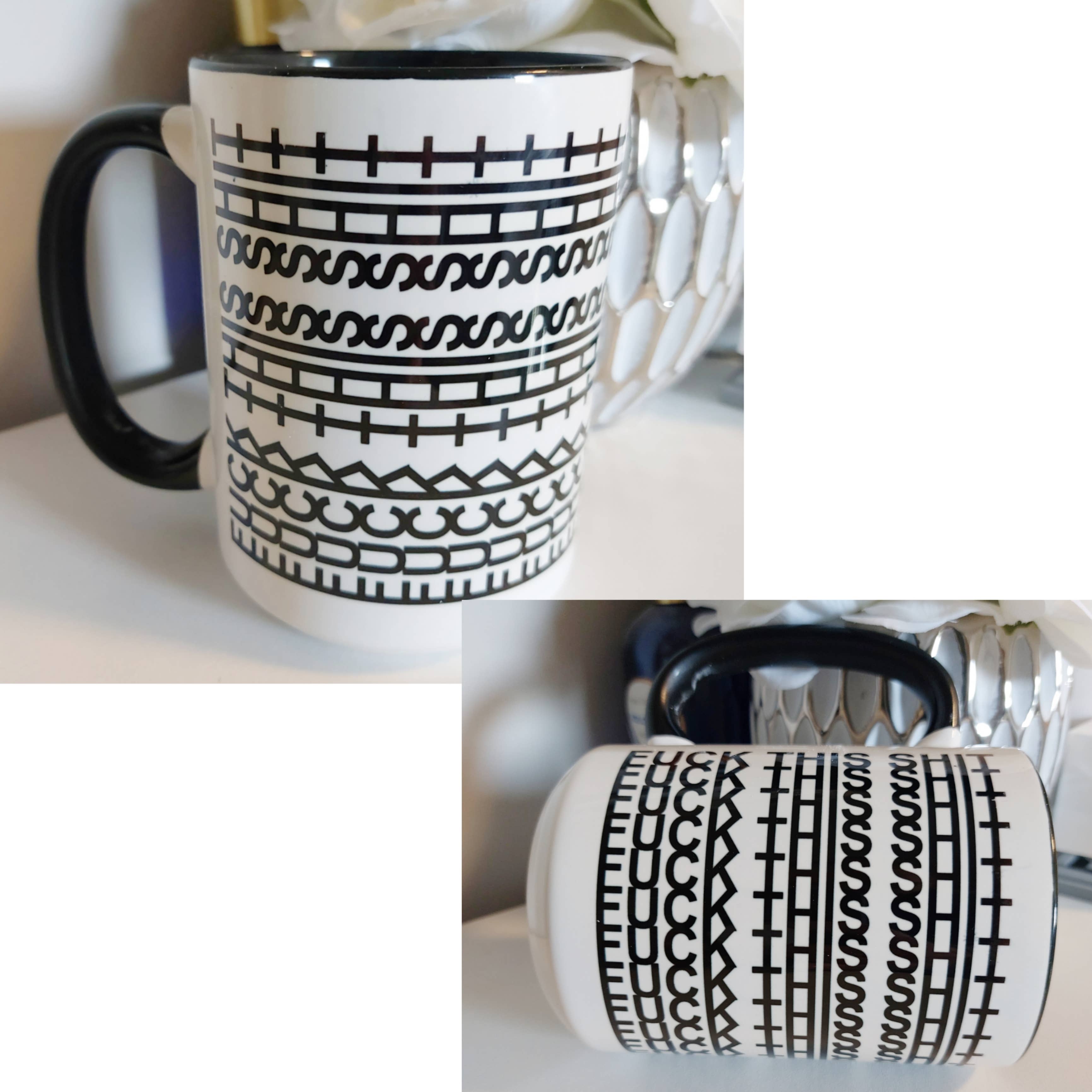 Grande tasse en céramique de 15 oz avec poignée et intérieur noirs. Le motif est imprimé des deux côtés de la tasse et passe au micro-ondes et au lave-vaisselle dans le panier supérieur. Les motifs sont imprimés sur la surface de la tasse et ne se décolorent pas et ne se rayent pas. #CoffeeMug #Funnymugs #printedMugs #15ozmugs #blackhandlemug #wholesalemugs #printedmugscanada #smallbusinesscanada
