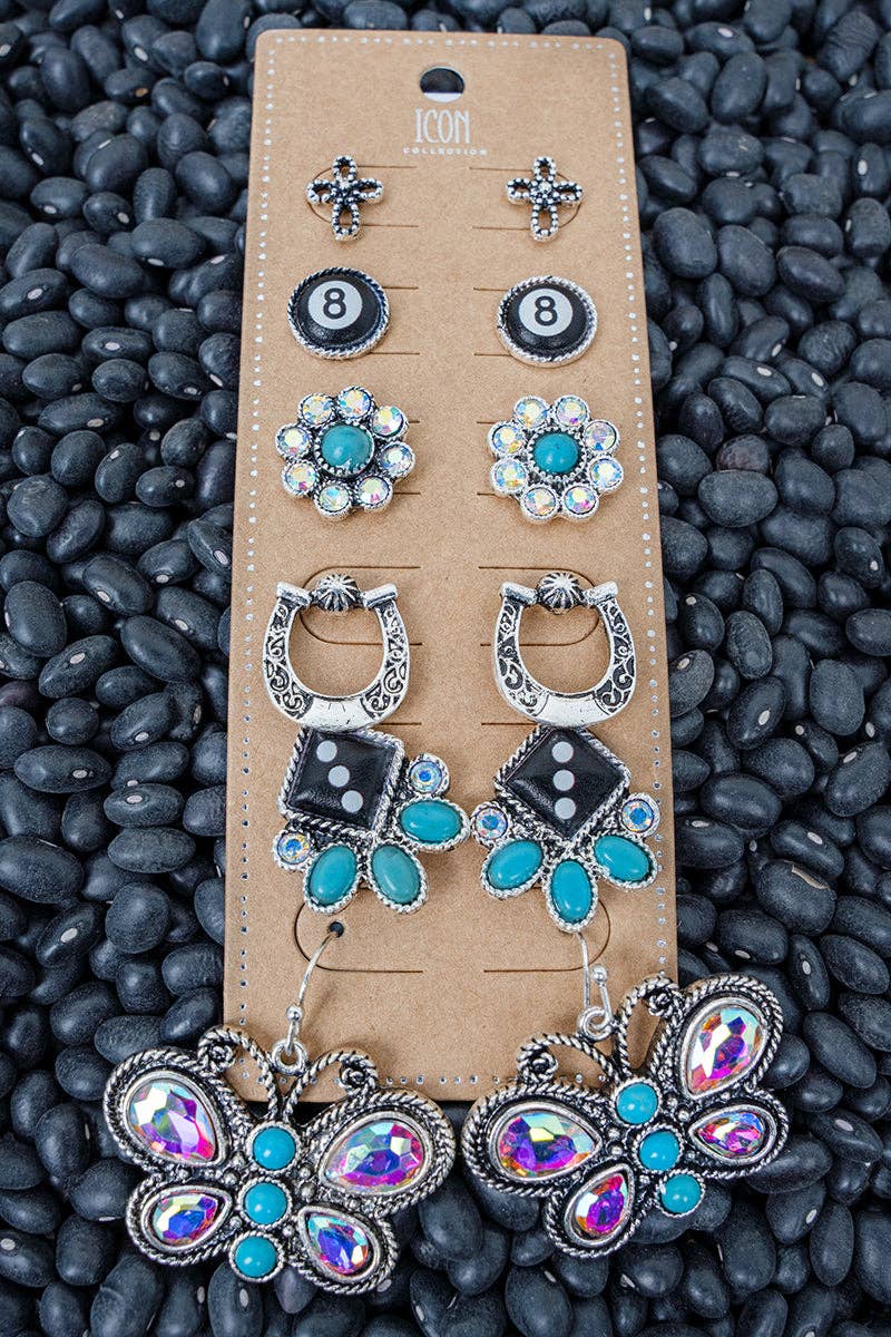 ENSEMBLE DE 6 PAIRES DE BOUCLES D'OREILLES À TIGE ASSORTIES WESTERN