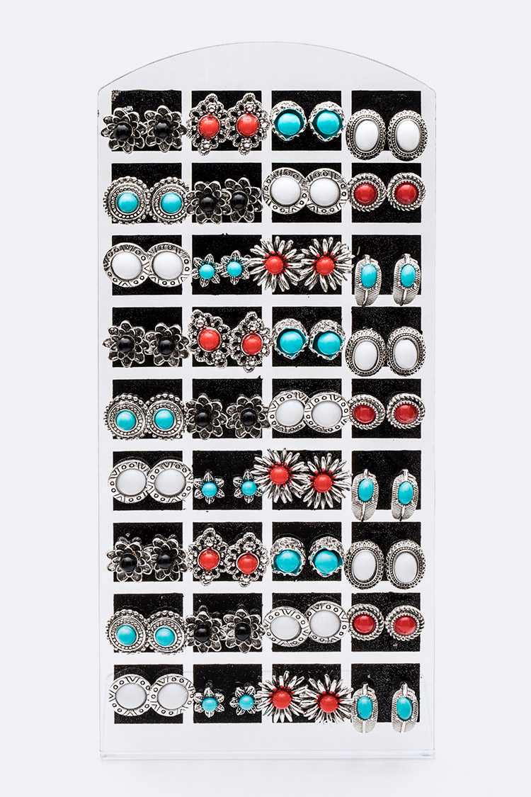 Ensemble de 36 paires de boucles d'oreilles à tige en turquoise en vente B2B