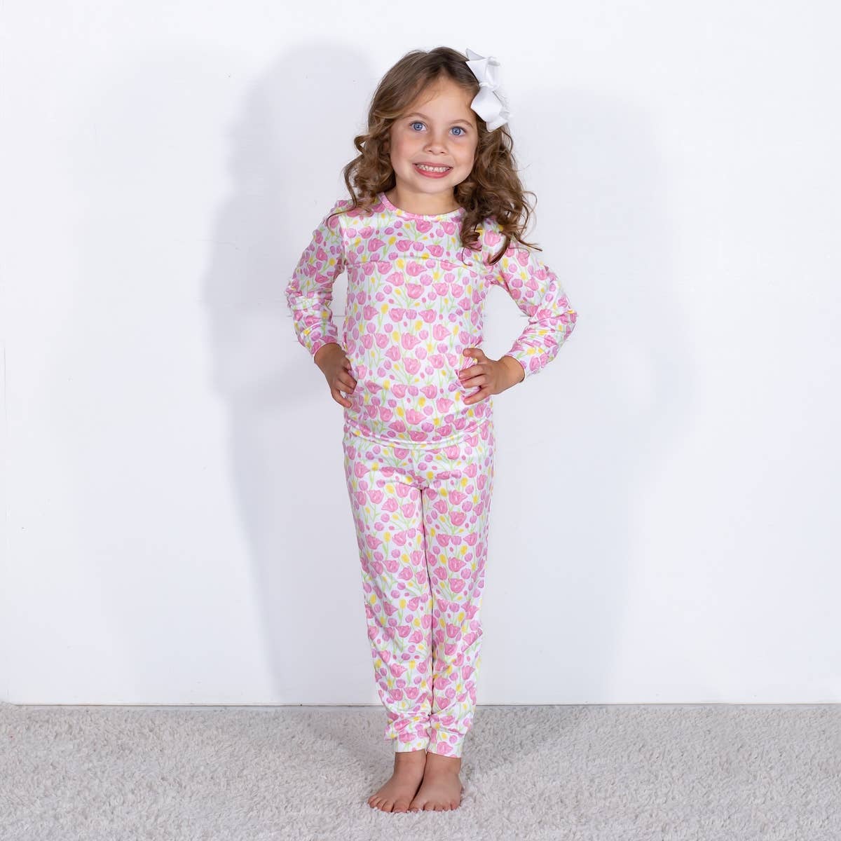 Cet ensemble de nuit à manches longues est doux et confortable, avec des volants précieux qui vous feront sourire. Un volant délicat orne l'encolure du haut de pyjama, et des volants classiques à l'arrière ajoutent la touche finale. Sans étiquette pour plus de confort. Fabriqué à partir de notre tissu en viscose de bambou SoftSnooze™ de qualité supérieure, ces pyjamas sont super douillets, respirants et doux pour les peaux sensibles. Parfait pour rester au chaud en hiver tout en étant frais en été. L'élasticité qui grandit avec l'enfant permet aux petits en pleine croissance de porter ces pyjamas plus longtemps ! Le doux motif de jardin de papillons fera battre votre cœur ! Se marie bien avec Rose Bubblegum, Blanc. Instructions d'entretien : Laver en machine à froid ; utiliser uniquement de l'eau de Javel non chlorée si nécessaire ; sécher à basse température / Pour éviter les dommages et prolonger la durée de vie du vêtement, utiliser un sac à linge dans la machine à laver et le sèche-linge. Composition du tissu : 95 % viscose de bambou, 5 % élasthanne Code de référence : G3581