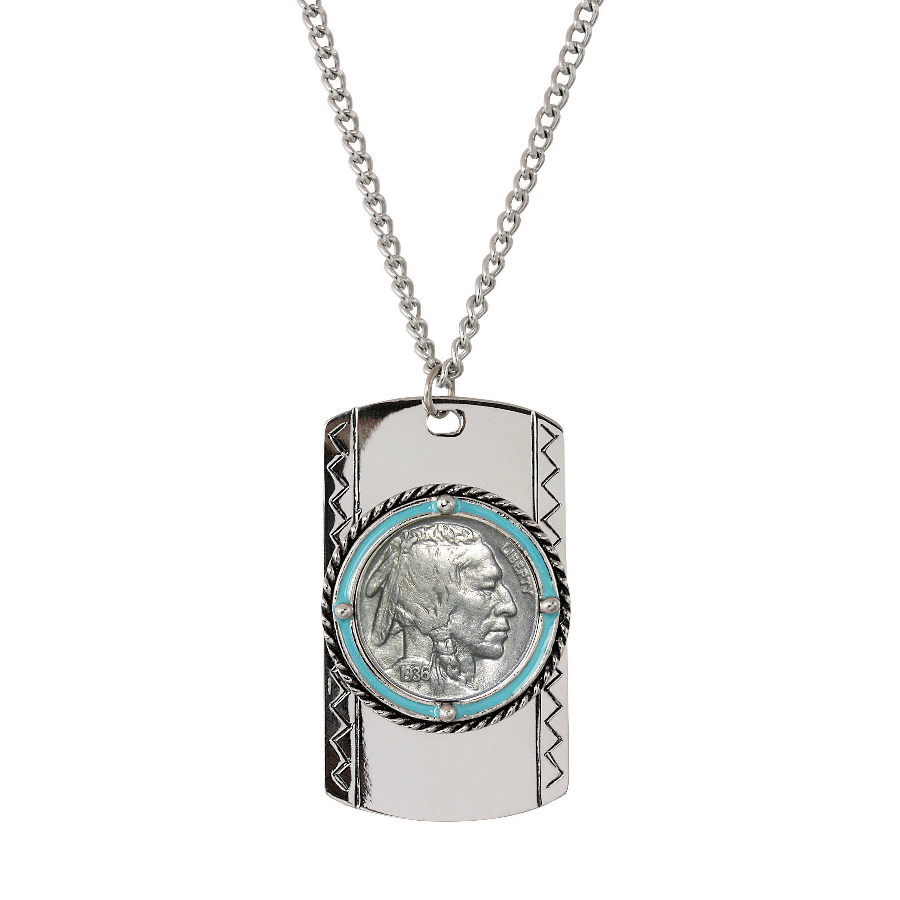 Gardez toujours un peu du Far West avec vous. La pince à billets turquoise a des pierres véritables, trois sur le dessus et trois sous le bas de la lunette. Le penny Indian Head a été frappé de 1859 à 1909 et est composé de cuivre. Il a été conçu par James B. Longacre et a maintenant plus de 100 ans. La légende raconte que sa fille Sarah a inspiré la modélisation d'une coiffe donnée à la Maison Blanche par un chef. Personne ne sait si Sarah était le modèle comme James B. Longacre l'a dit un jour Vénus, une statue grecque, était son inspiration pour le design. Le revers a d'abord été conçu pour ressembler au laurier, puis a été remplacé par du chêne. Le penny Indian Head n'a été frappé qu'à Philadelphie (qui ne porte aucune marque d'atelier) jusqu'au début de la production à la Monnaie de San Francisco en 1908.