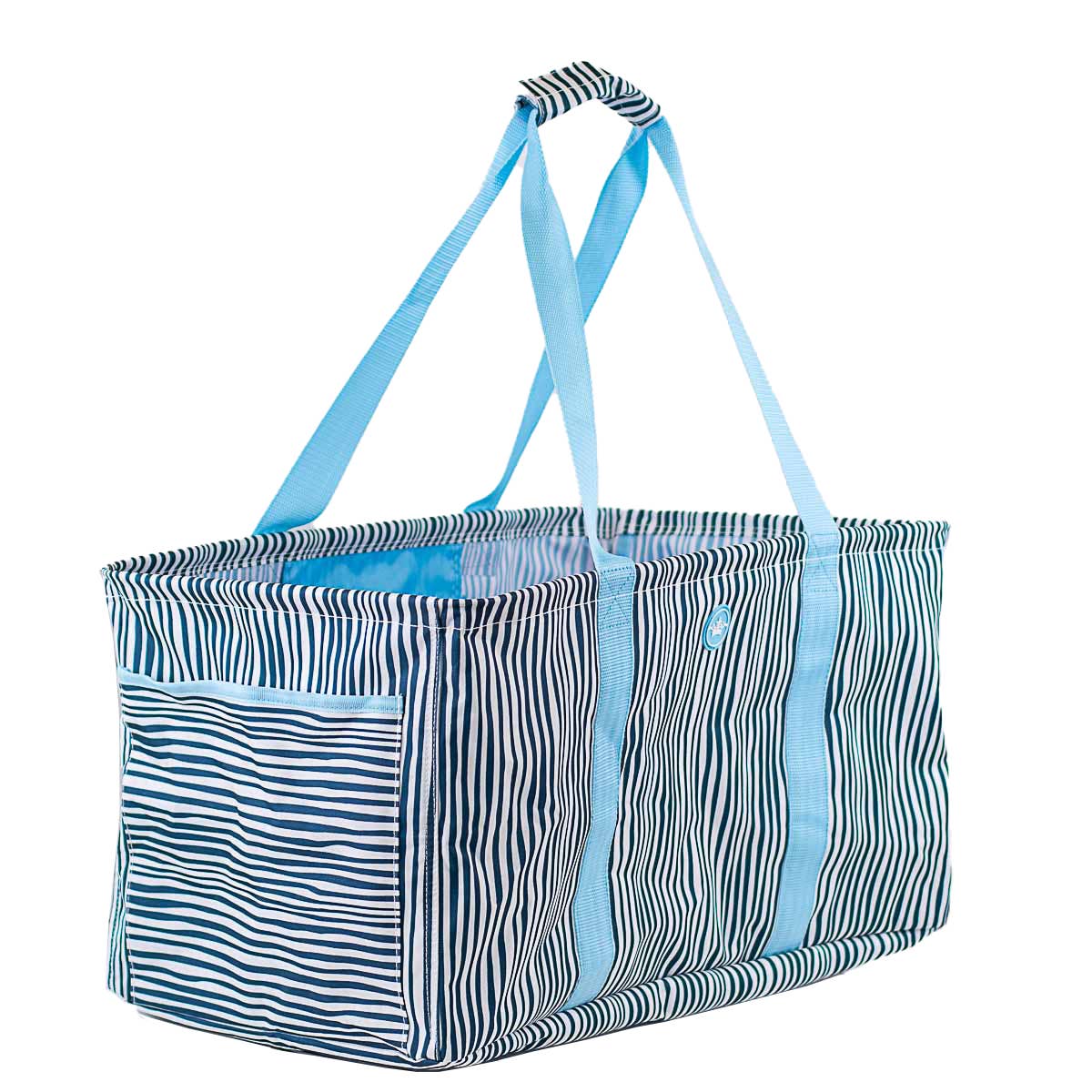 Grand cabas en toile cirée à rayures. 20" x 15" de profondeur, soufflet de 3" permettant une belle largeur, sangles en sangle noire. Un imprimé populaire à l'extérieur et une couleur d'imprimé complémentaire pour l'intérieur. Nos grands cabas sont parfaits pour les courses, la plage, la salle de sport et les fournitures de tricot. Fait un excellent sac pour les bébés et pour organiser vos affaires ! Imperméable et facile à nettoyer.