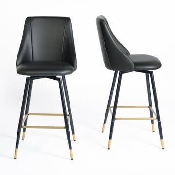 Ensemble de 2 tabourets de bar en lin avec rotation à 360°, dossier incurvé, siège en mousse haute densité et pieds en métal robustes – montage facile, idéal pour les îlots de cuisine. Caractéristiques principales - Fonction de rotation à 360° : Rotation fluide pour un mouvement facile et pratique lors de l'utilisation. - Confort optimal : Mousse haute densité certifiée CertiPUR-US, siège agrandi (50 cm x 44 cm) et dossier haut en tonneau pour un confort prolongé. - Design élégant : Dossier incurvé élégant et revêtement en lin, complète les décors modernes du milieu du siècle et divers intérieurs. - Durabilité robuste : Pieds en métal noir mat en forme de X, capacité de poids de 136 kg et repose-pieds intégré pour réduire la pression sur les jambes. - Montage facile : Comprend tout le matériel, les outils et un manuel illustré pour une installation sans tracas. Spécifications du produit Matériau : tissu en lin, mousse haute densité certifiée CertiPUR-US, pieds en métal noir mat Dimensions : 50,04L × 54,10W × 90,93H cm Hauteur du siège : 65 cm Poids : 7,89 kg par tabouret (ensemble de 2) Capacité de poids : 136 kg par tabouret Style : Moderne du milieu du siècle Assemblage requis : Oui (facile) Application : Îlot de cuisine, pub, bar à domicile, salle à manger Adaptation : Convient pour les comptoirs/tables d'îlot de 89-96 cm de hauteur