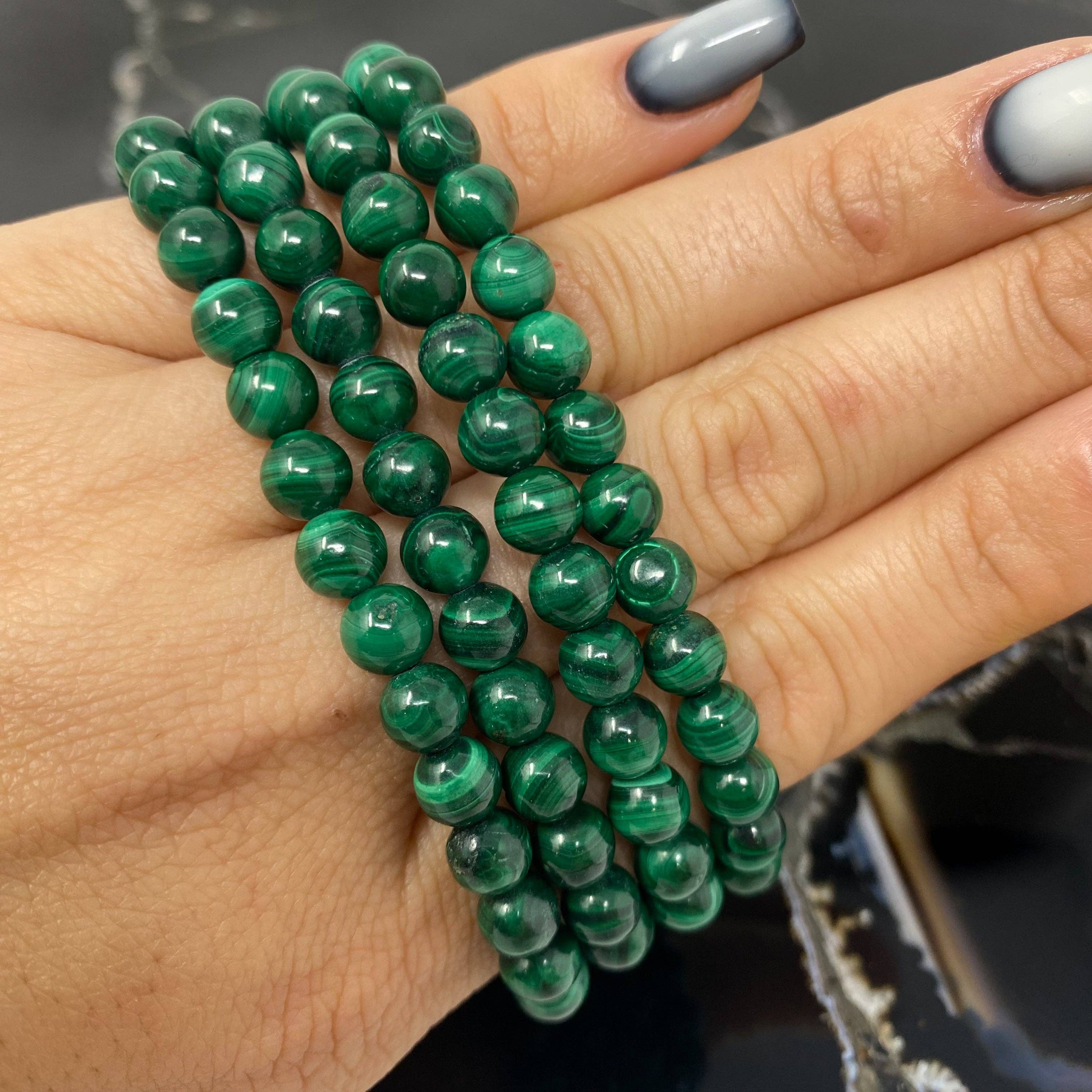 Bracelet en perles de serpentine verte 6 mm - Poignet moyen en vente B2B