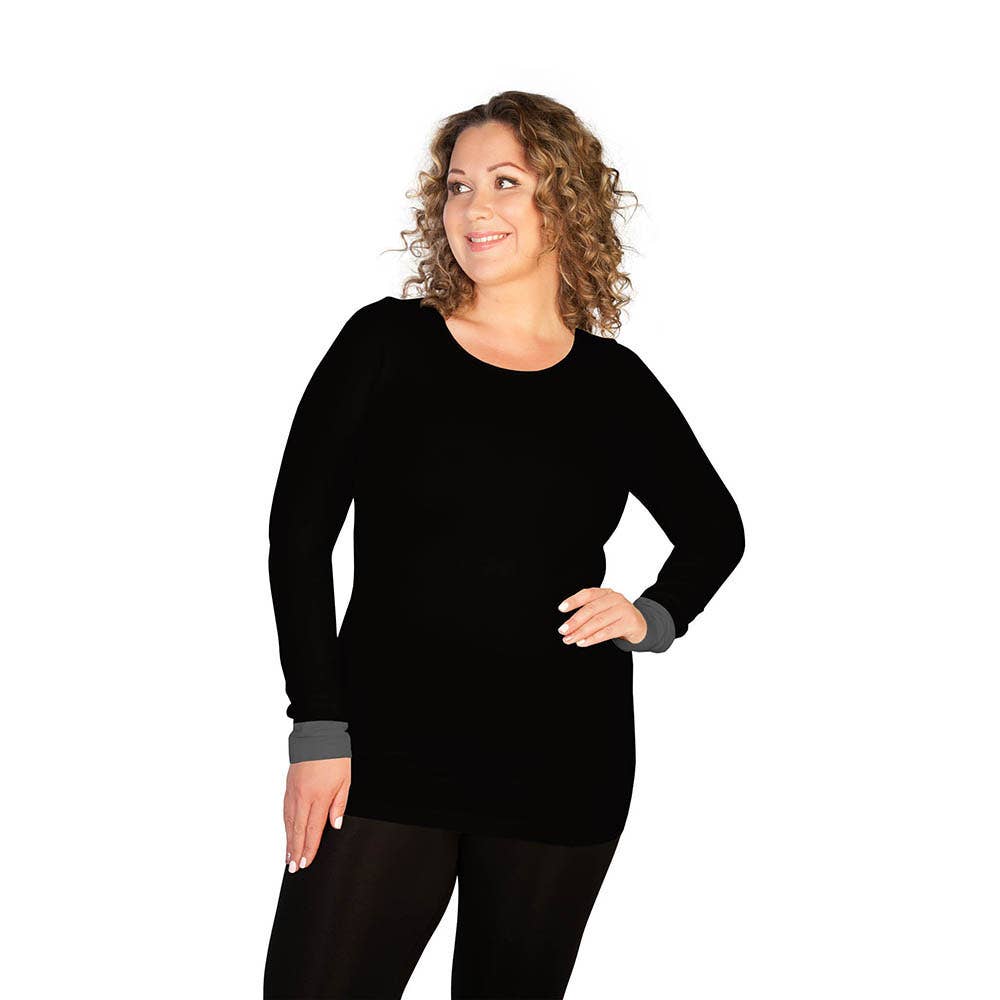 Une pièce de base idéale. Notre col rond à manches longues, comme on le voit sur la couverture du magazine o sur Oprah elle-même, peut être porté seul, avec un foulard ou un collier, ou sous un pull. Ce basique est parfait pour les jours où vous ne savez pas où la vie vous mènera ! Taille unique qui convient à la plupart des 14-22.