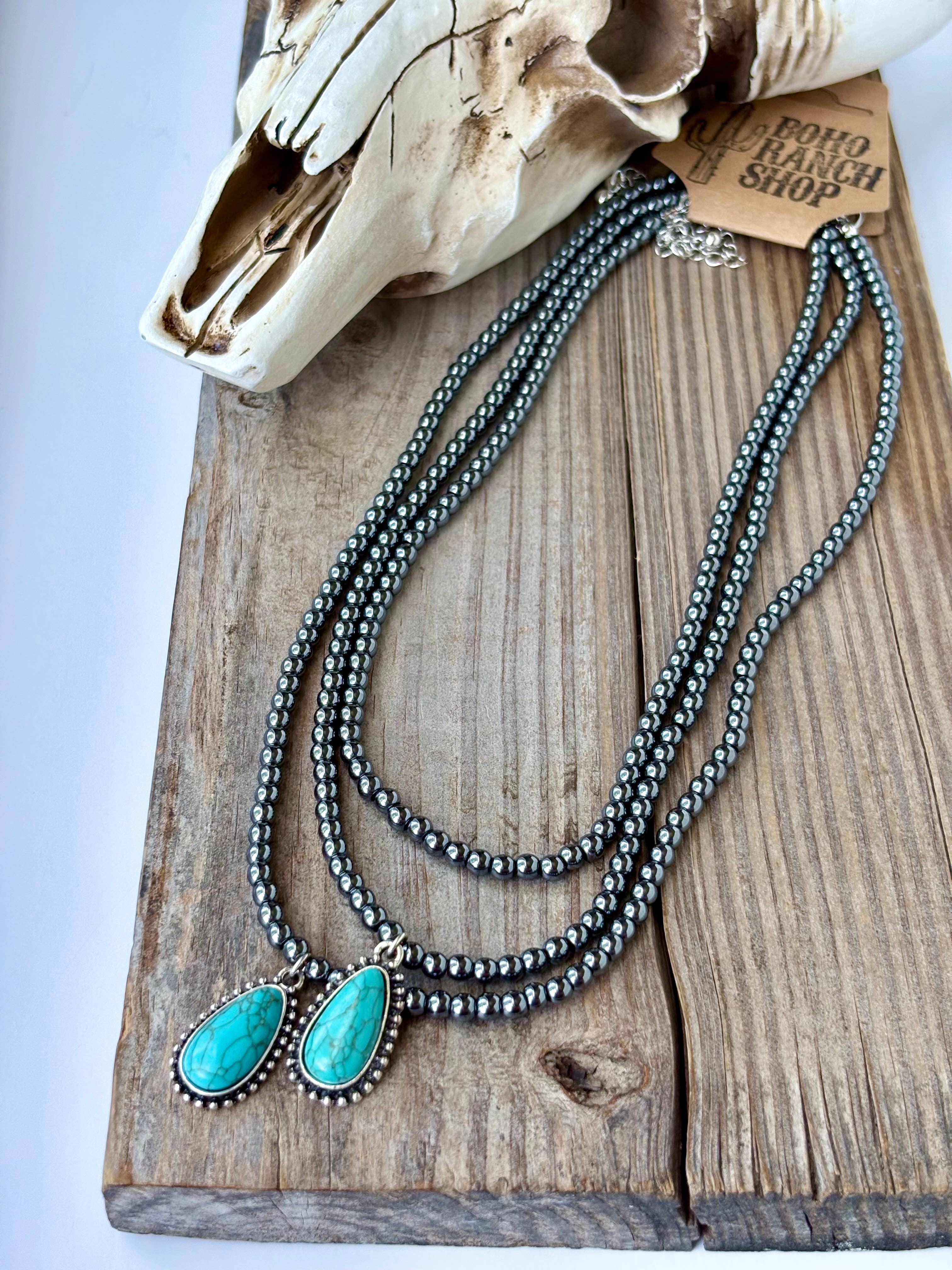 Collier en forme de nid fait main avec pierres turquoises et perles