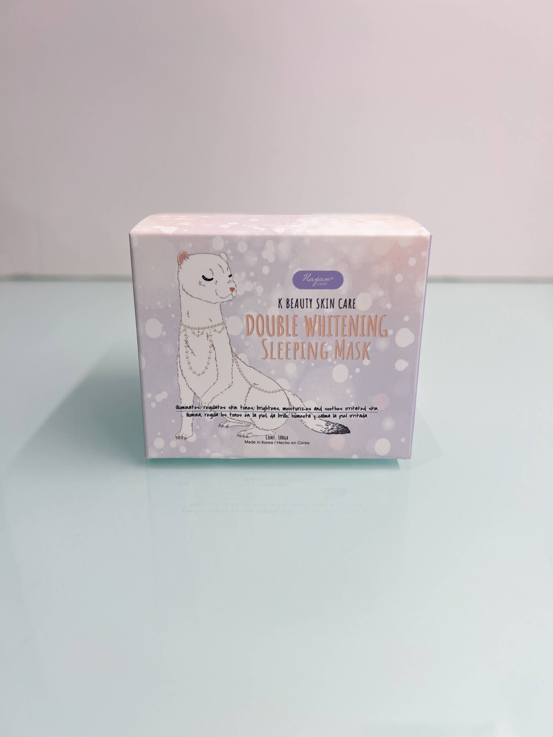 Masque de Nuit Double Éclaircissant Hayan K-Beauty Fonction : Un masque de nuit conçu pour illuminer, réguler le teint, éclaircir et hydrater en profondeur tout en apaisant la peau irritée Formulation : Fabriqué en Corée, disponible en pot de 100 g. Il existe également une version infusée au miel et aux baies pour une hydratation supplémentaire grâce aux extraits de fruits. Texture & Utilisation : Généralement appliqué comme dernière étape de votre routine du soir—étalez une fine couche sur le visage et le cou propres et secs, laissez absorber pendant la nuit, rincez le matin. De nombreux utilisateurs apprécient sa finition non irritante et sa facilité d'absorption. 🎯 Pour qui Idéal pour ceux qui souhaitent éclaircir et unifier le teint pendant la nuit. Adapté aux peaux sèches ou irritées, grâce à sa formule nourrissante et apaisante. Parfait si vous préférez un soin de nuit simple et sans tracas—appliquez, dormez, et c'est tout.