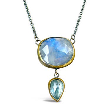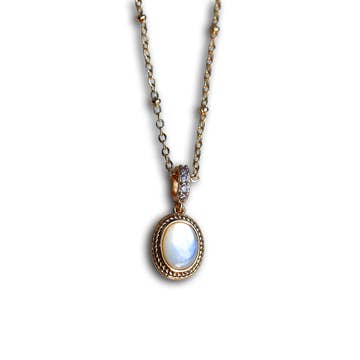 Pendentif en métal mélangé et pierre de lune arc-en-ciel avec chaîne en vente B2B