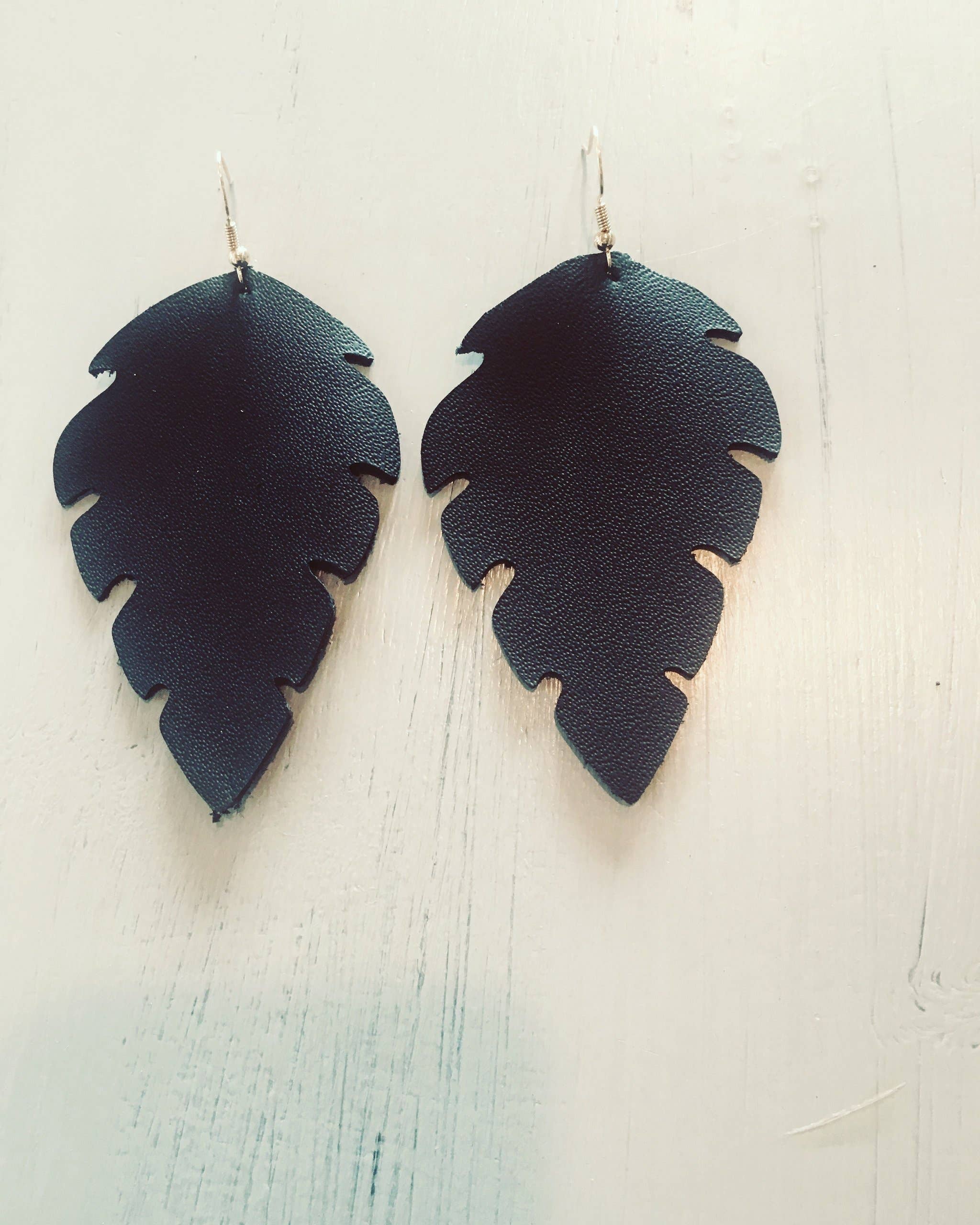 Boucles d'oreilles plumes en cuir noir (4 tailles)