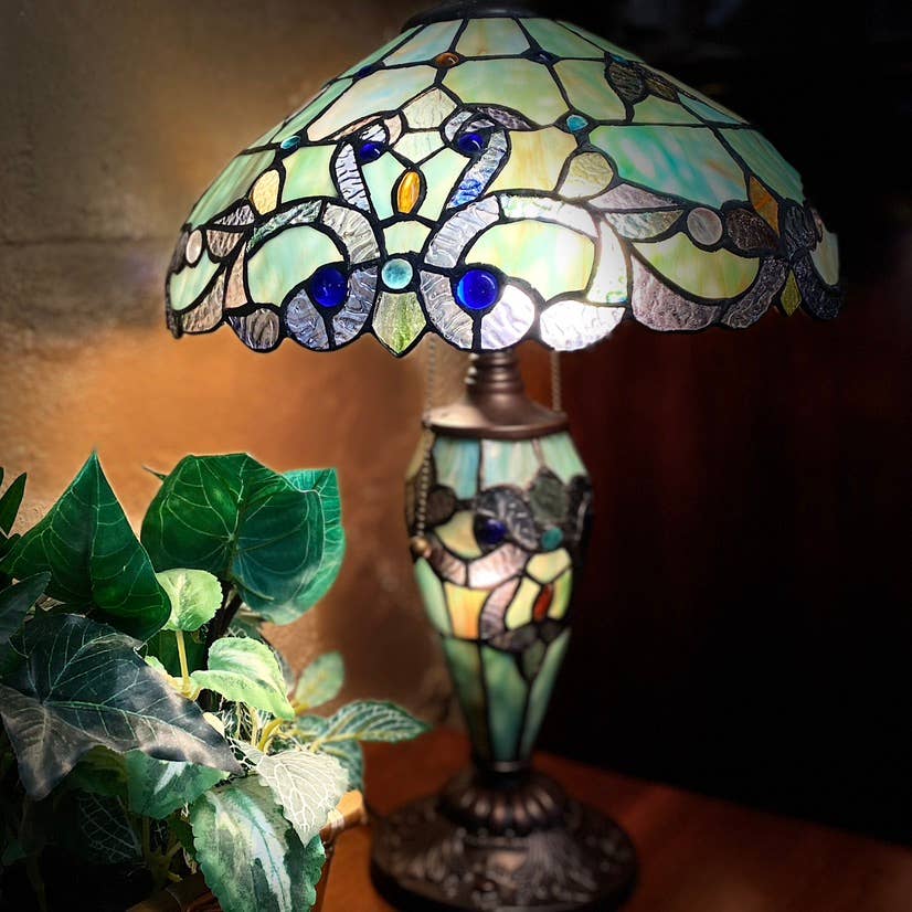 Cette lampe de chevet traditionnelle est dotée d'une base unique en forme de tronc d'arbre originale, finie en bronze vieilli. Des coupes de verre orange, marron et rouge forment l'abat-jour en vitrail inspiré des feuilles d'érable pour un éclat chaleureux et accueillant. L'abat-jour en forme de bol filtre la lumière de deux ampoules A19 (non incluses), diffusant un éclairage doux vers le bas, idéal pour lire au chevet du patient ou créer une ambiance apaisante dans votre salon. Allumez-le et éteignez-le facilement à l'aide des chaînes de traction, et placez-le facilement dans n'importe quelle pièce à l'aide du cordon de 65 pouces. Dimensions totales : 16 po de longueur x 16 po de largeur x 24,5 po de hauteur Base en polyrésine en forme d'arbre avec finition bronze antique L'abat-jour en vitrail en forme de bol aux couleurs orange, marron et rouge forme la canopée de l'arbre Comprend un cordon de 6,5 pouces de long avec interrupteur à chaîne Nécessite une ampoule de 60 watts de type A19, ampoule non incluse Homologué UL Pour une utilisation en intérieur uniquement