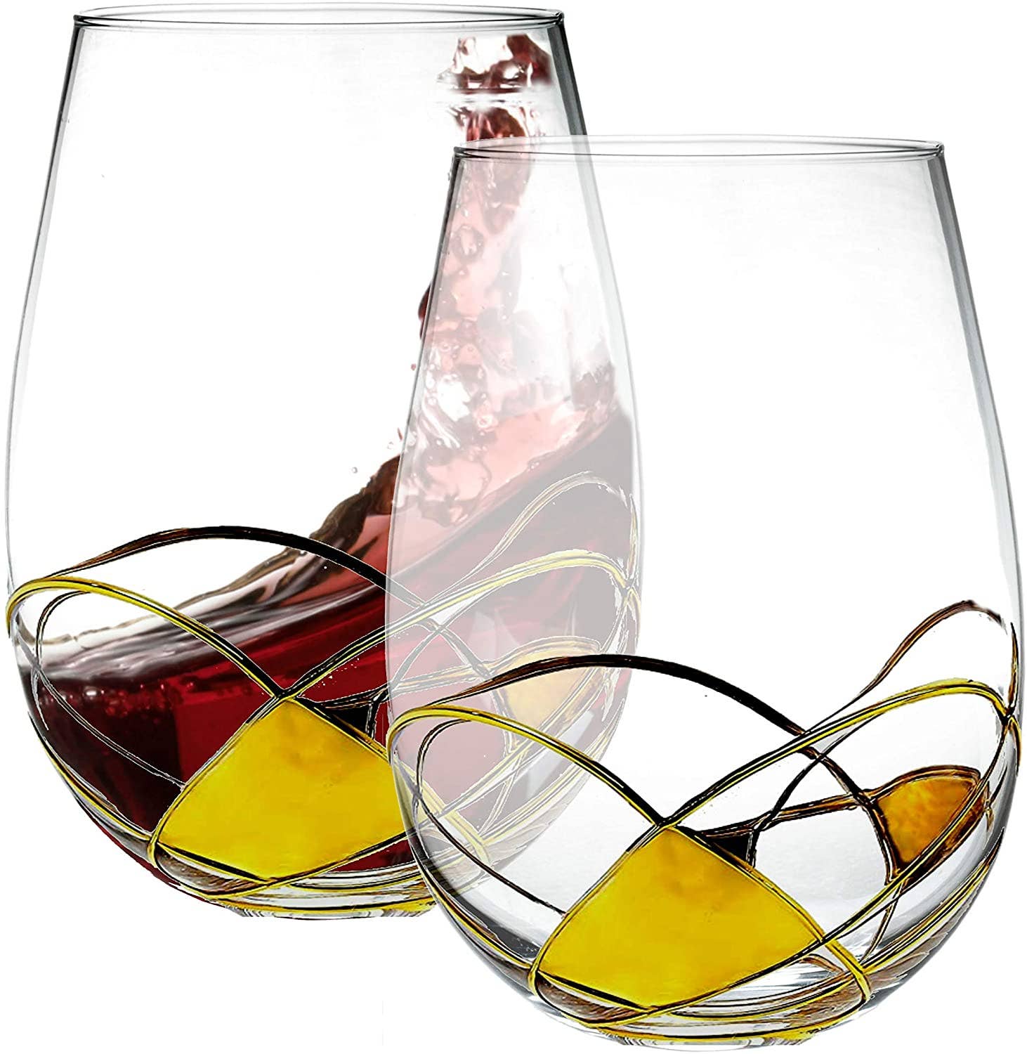 Bezrat Lot de 2 verres à vin rouge peint à la main