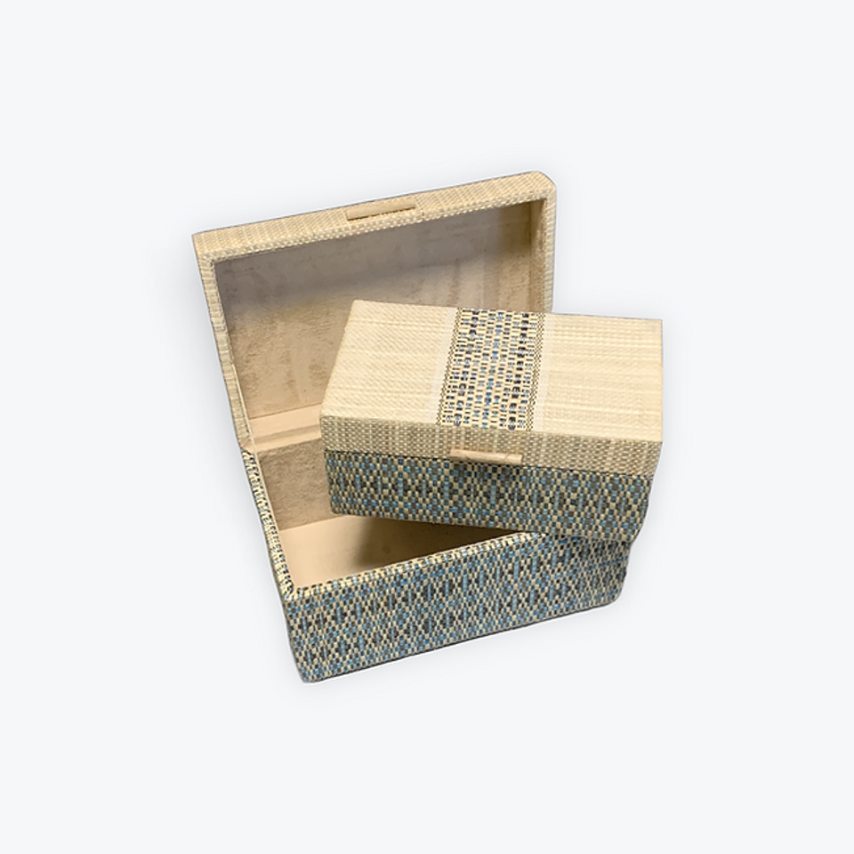 BOÎTE À COUVERCLE EN JONC DE MER RECTANGULAIRE