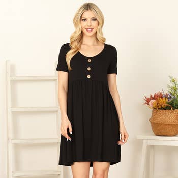 Robe élégante unie à col rond, manches papillon, ligne A, ajustée en vente B2B
