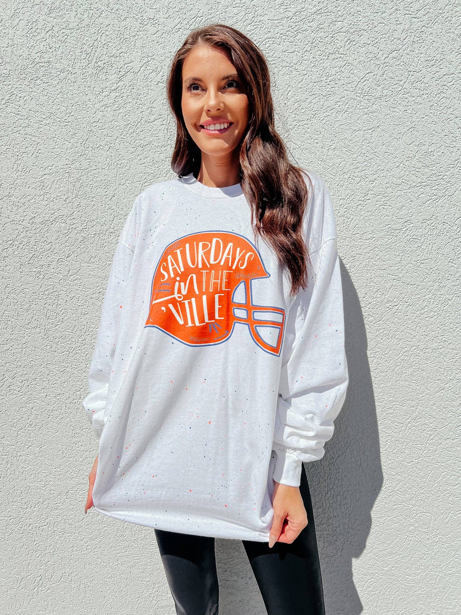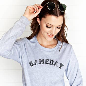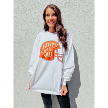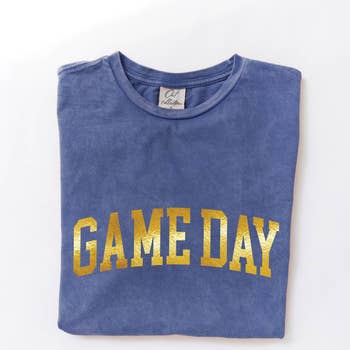 T-shirt unisexe à manches courtes en violet chiné avec encre jaune doré. Parfait pour les journées d'automne à Baton Rouge.