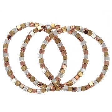 Bracelets élastiques en perles de cuivre massif. Options : - Perles facettées de 3 mm - Perles rondes de 4 mm Les bienfaits supposés du port d'un bracelet en cuivre incluent : - Soulagement des douleurs et inflammations liées à l'arthrite - Stérilisation des plaies grâce à ses propriétés antibactériennes - Amélioration du système immunitaire - Action antioxydante - Prévention des maladies cardiovasculaires