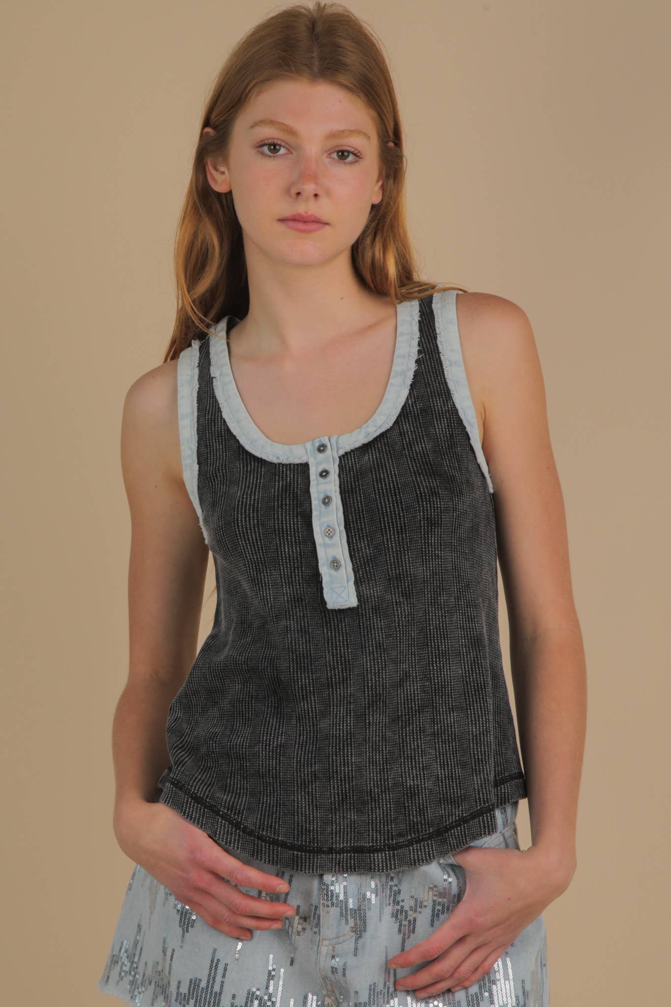Haut sans manches boutonné à bordure festonnée en vente B2B