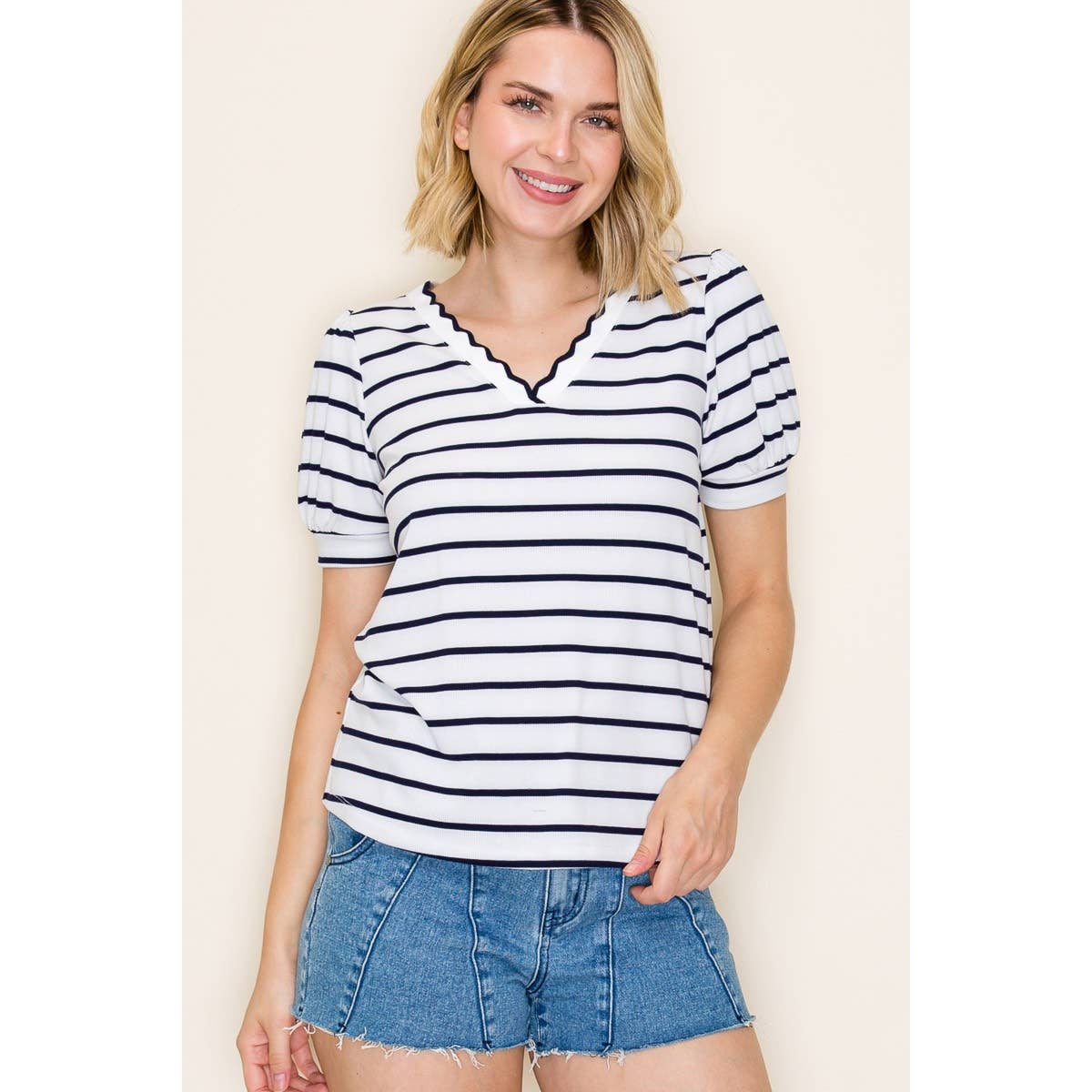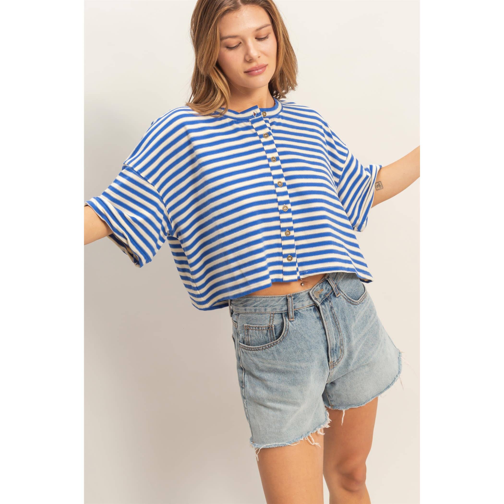 Top court à rayures Slv Preppy Soft Fine Gauge en vente B2B