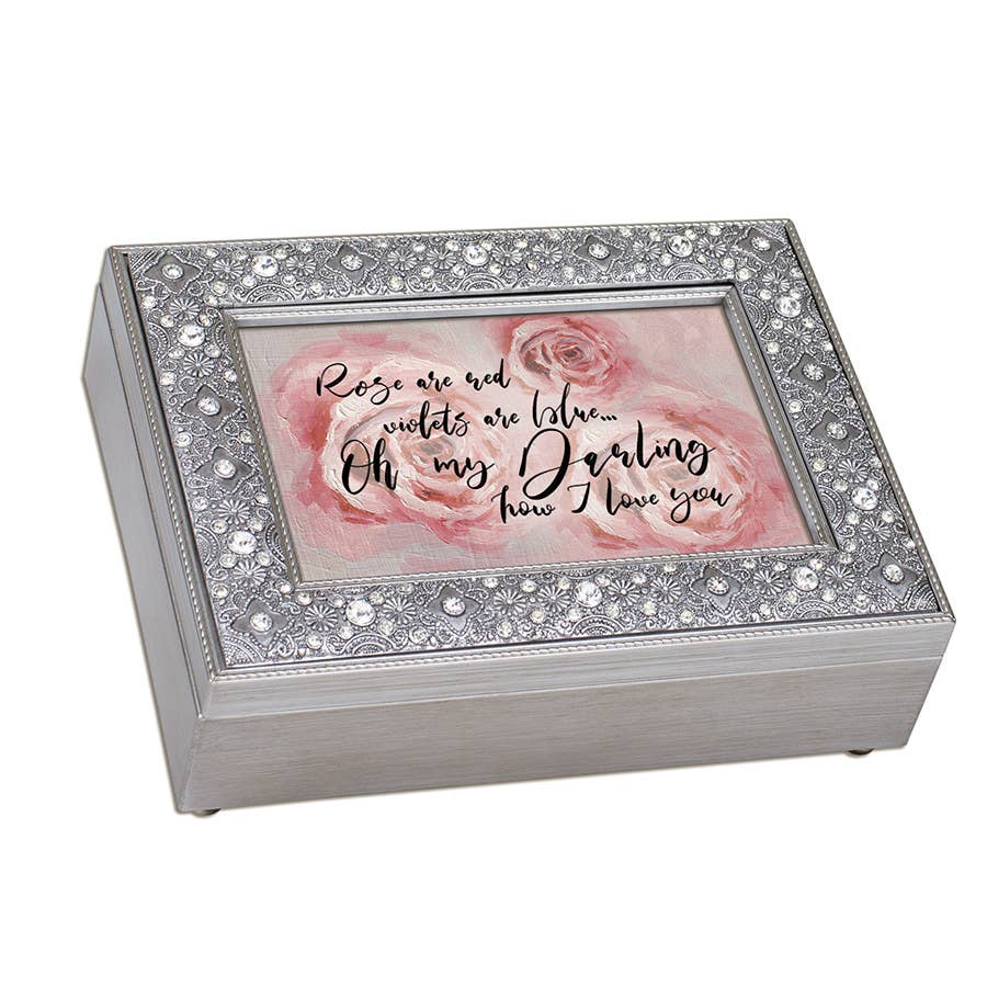 Boîte à musique avec couvercle articulé avec ouverture photo 4 x 6. La boîte à bijoux mesure environ 8 x 15,2 x 2,75 pouces ; remplacez l'illustration par une photo personnelle de 10,2 x 15,2 cm. Intérieur doublé de velours noir coussinent vos précieux trésors ; les pieds décoratifs sont rembourrés pour protéger les surfaces de table et d'étagère. Idéal pour les arrangements floraux ; mécanisme traditionnel de remontage engage de la musique. Chanson : You Light Up My Life