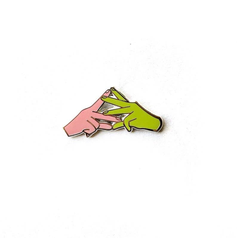 Détails : Épinglette en émail dur de 0,65 po x 1,03 po Laiton estampé avec du métal doré ou cuivré Fermeture d'embrayage en caoutchouc Emballé sur une carte arrière dorée enveloppée dans du cellophane Conçu exclusivement pour Everyday Olive à Los Angeles, en Californie