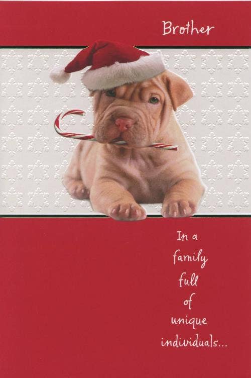 Terrier de Noël avec nœud bleu, cartes de Noël des années 1940