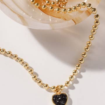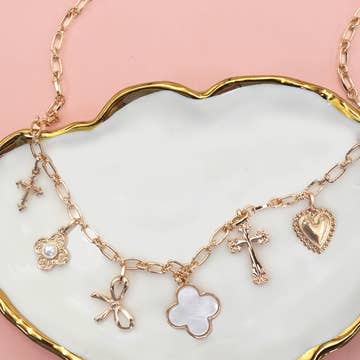 Offrez à vos clients une touche de charme cosmique avec ce collier audacieux—une fusion éblouissante d'icônes célestes et de fleurs délicates, parfait pour ceux qui aiment la fantaisie avec leur éclat. Conçu pour capturer la magie d'une nuit étoilée avec une touche inspirée des années 2000, cette pièce mélange des détails audacieux avec une élégance sans effort. Doté d'une étoile en CZ brillante, d'une perle d'eau douce, d'un nœud en CZ et d'une fleur sculptée en nacre, il combine des textures oniriques avec un éclat accrocheur. En son cœur, un médaillon en nacre et CZ ajoute une touche sentimentale, complété par un soleil en CZ rayonnant, un croissant de lune en nacre et un cœur en CZ suspendu pour une finition céleste parfaite. Conçu pour briller seul ou se superposer sans effort, ce collier est un mélange de romantisme, de gaieté et de nostalgie. Un incontournable pour les boutiques, il brille du jour à la nuit étoilée. * Laiton plaqué or 14KT * Véritable perle d'eau douce cultivée et nacre * Longueur : 16″ plus chaîne d'extension de 2″