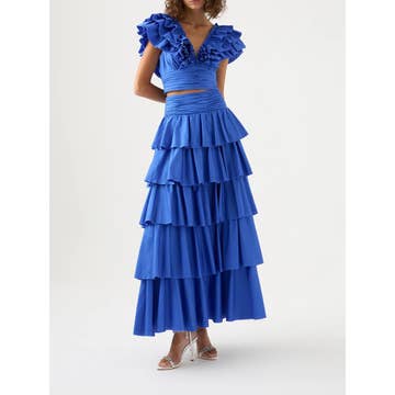 100 % coton. Jupe évasée imprimée pour femme. Taille élastique avec ceinture ajustable. Longueur courte. 24 pouces de long Possède des poches latérales Foulard assorti inclus. Le haut court est doté d'un élastique à la taille et à l'encolure avec 1 couche de volants. Peut être porté sur les épaules, sur une épaule, en tube et à col rond. Taille unique qui convient à la plupart des personnes, du S au XL Couleur : ton bleu/blanc