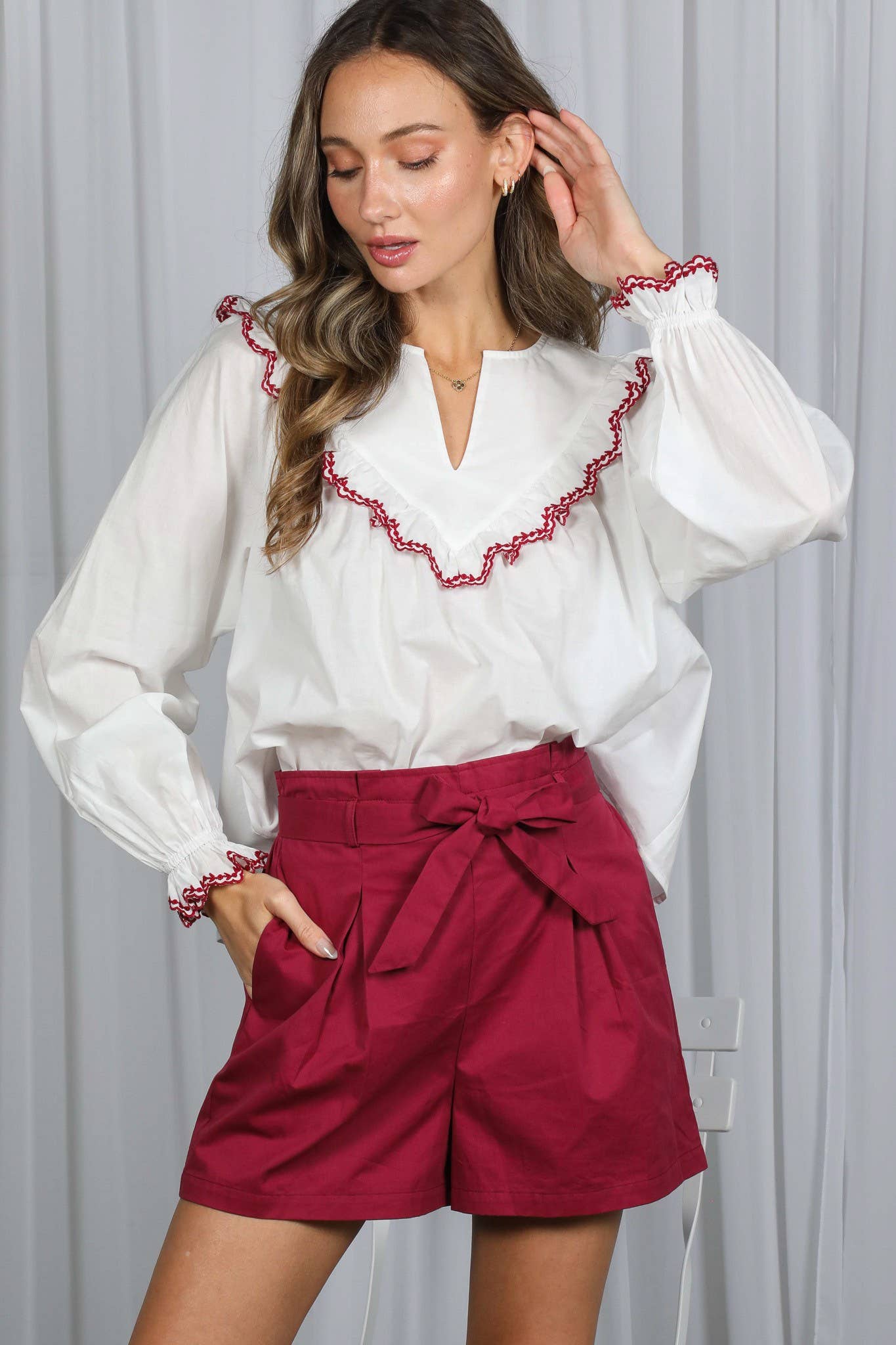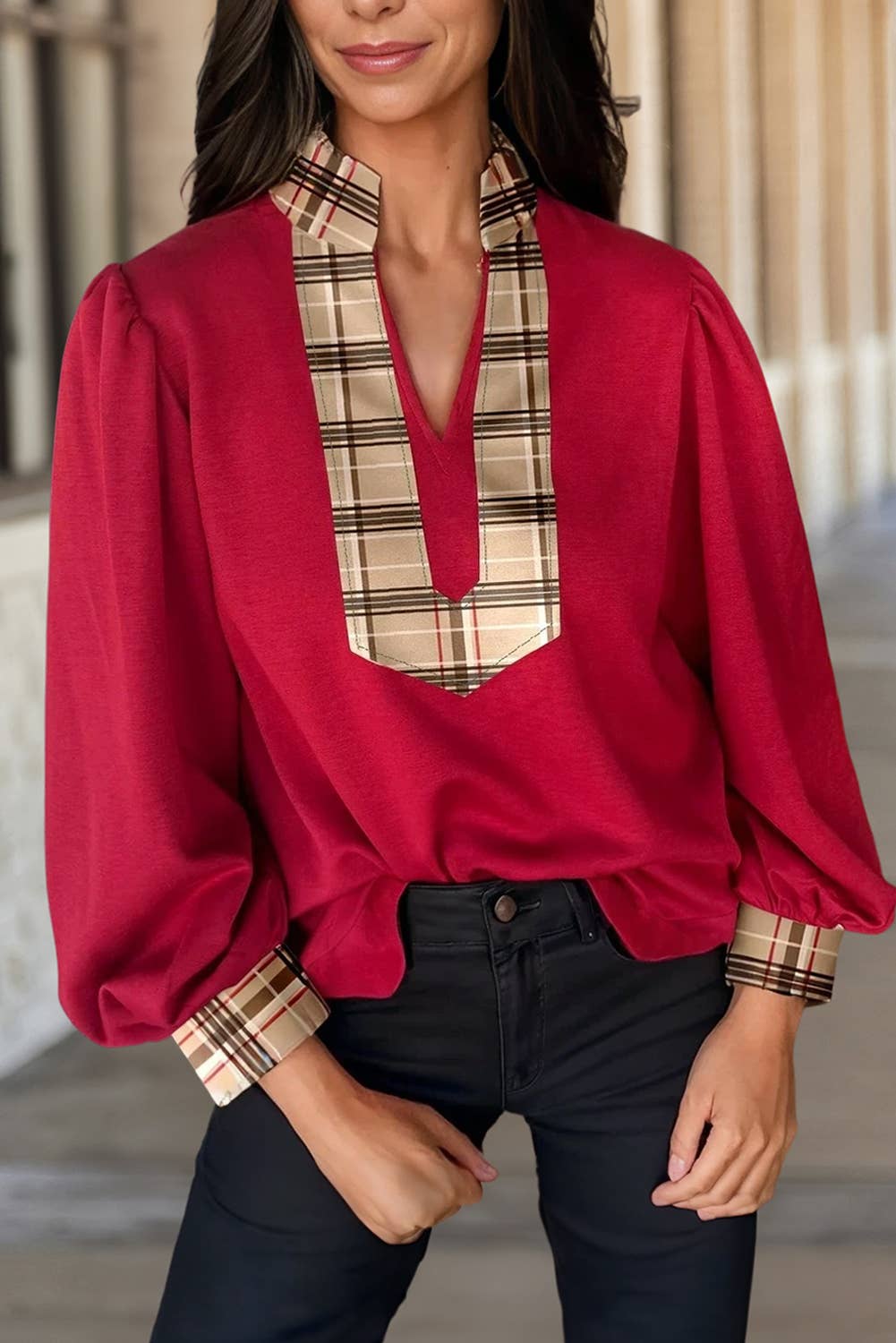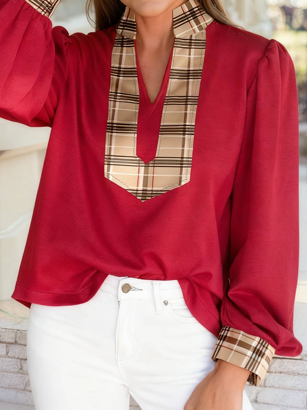 Cette version met en valeur le charmant col Peter Pan, conçu pour offrir un look jeune et flatteur. Le chemisier à manches longues couvre le ventre et offre un style polyvalent, parfait pour les tenues d'automne.