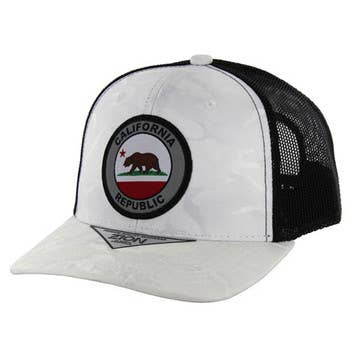 Salut surf city USA, c'est pour vous ! Le design qui a lancé une croisade de fierté parmi les habitants de la Californie et les touristes. Notre série originale « ramones - république » a incité les gens dans de nombreuses communautés balnéaires, de san diego à san francisco et partout entre les deux. Restez bien rangé ! • Croisé de coton à bec plat de qualité supérieure. • 5 panneaux, maille snapback camionneur. • Taille unique pour la plupart. Beachwear, Californie, Ours de Californie, Californie République, chapeau, chapeaux, huntington, plage de Huntington, hommes, surf, ours de surf. Taille : taille unique