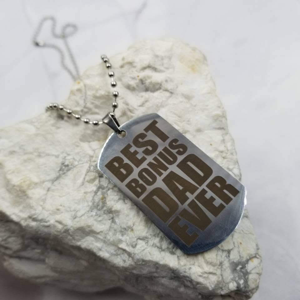 Notre chaîne en acier inoxydable est disponible en 22" et dispose d'une grande plaque de déclaration. Fabriqué à la main aux États-Unis, toutes les assiettes de déclaration sont 100 % étain américain véritable.