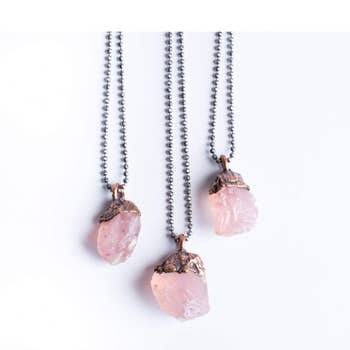 Craquez pour le quartz rose, la gemme réputée pour ses propriétés apaisantes et aimantes. Ce collier est fabriqué à la main avec une gemme de quartz rose brut soigneusement sélectionnée, complètement non polie ou traitée de quelque manière que ce soit. Les chaînes sont disponibles en argent sterling ou en or 14 carats. Le quartz rose est une pierre d'amour. On pense qu'il rétablit la confiance et l'harmonie dans les relations et encourage l'amour inconditionnel. Elle purifie le cœur et favorise l'amour de soi, la guérison intérieure et l'amitié. Le quartz rose est également une pierre de naissance alternative pour le mois de janvier, ainsi que la pierre de naissance spirituelle du Taureau. PIERRE PRÉCIEUSE : quartz rose véritable TAILLE DE LA PIERRE : 25 à 35 mm en moyenne (1 à 1,38 pouces)
