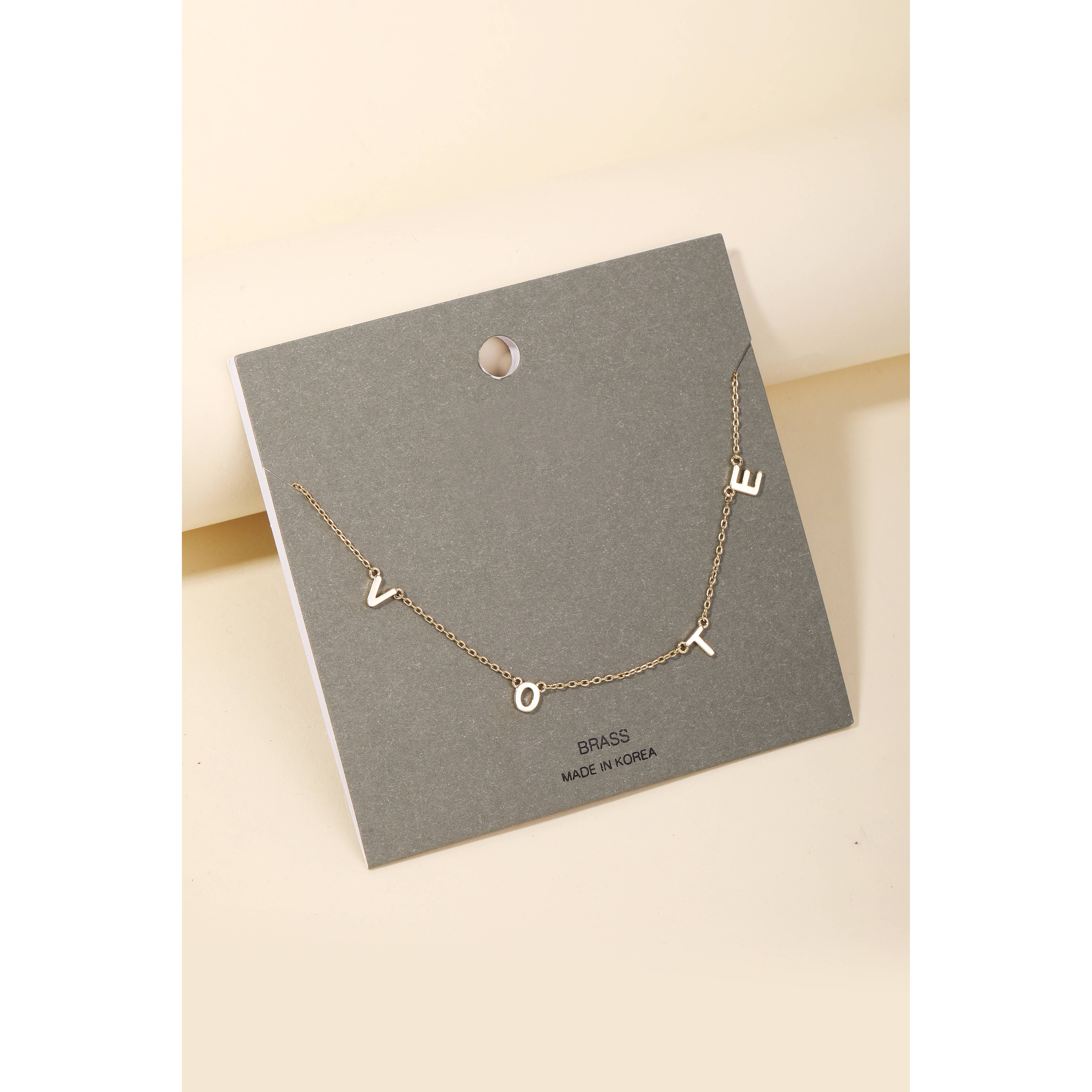 Le collier de vote mesure environ 1/2" et s'accroche sur une chaîne de 45,7 cm. Disponible en or 14 carats et argent sterling. L'or 14 carats est un matériau hypoallergéique de haute qualité composé d'une épaisse feuille d'or 14 carats qui est collée au métal de base et ne ternit, ne s'écaille pas ou ne s'usera jamais. La couche d'or sur les bijoux remplis d'or est environ 100 fois plus épaisse que la plaque d'or.