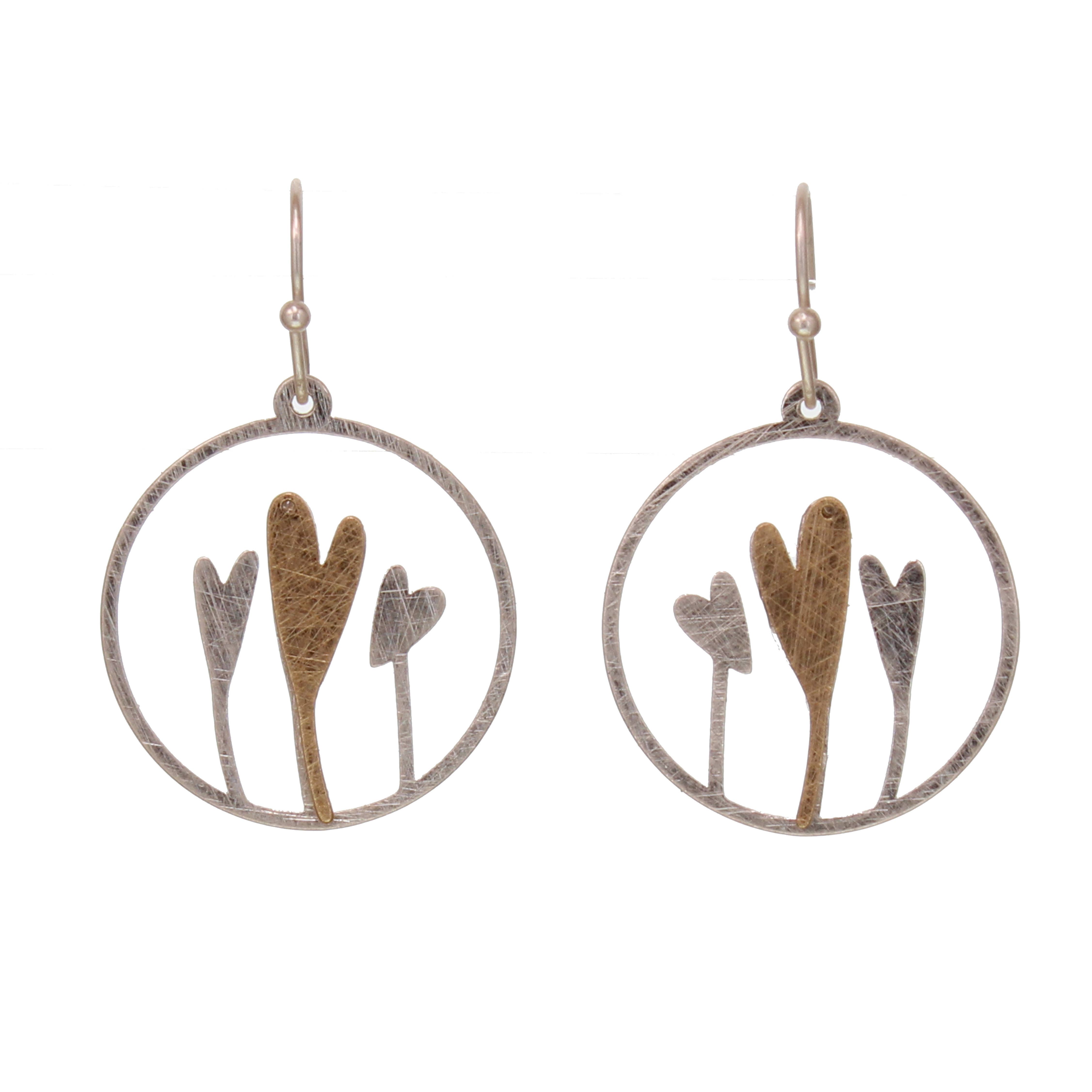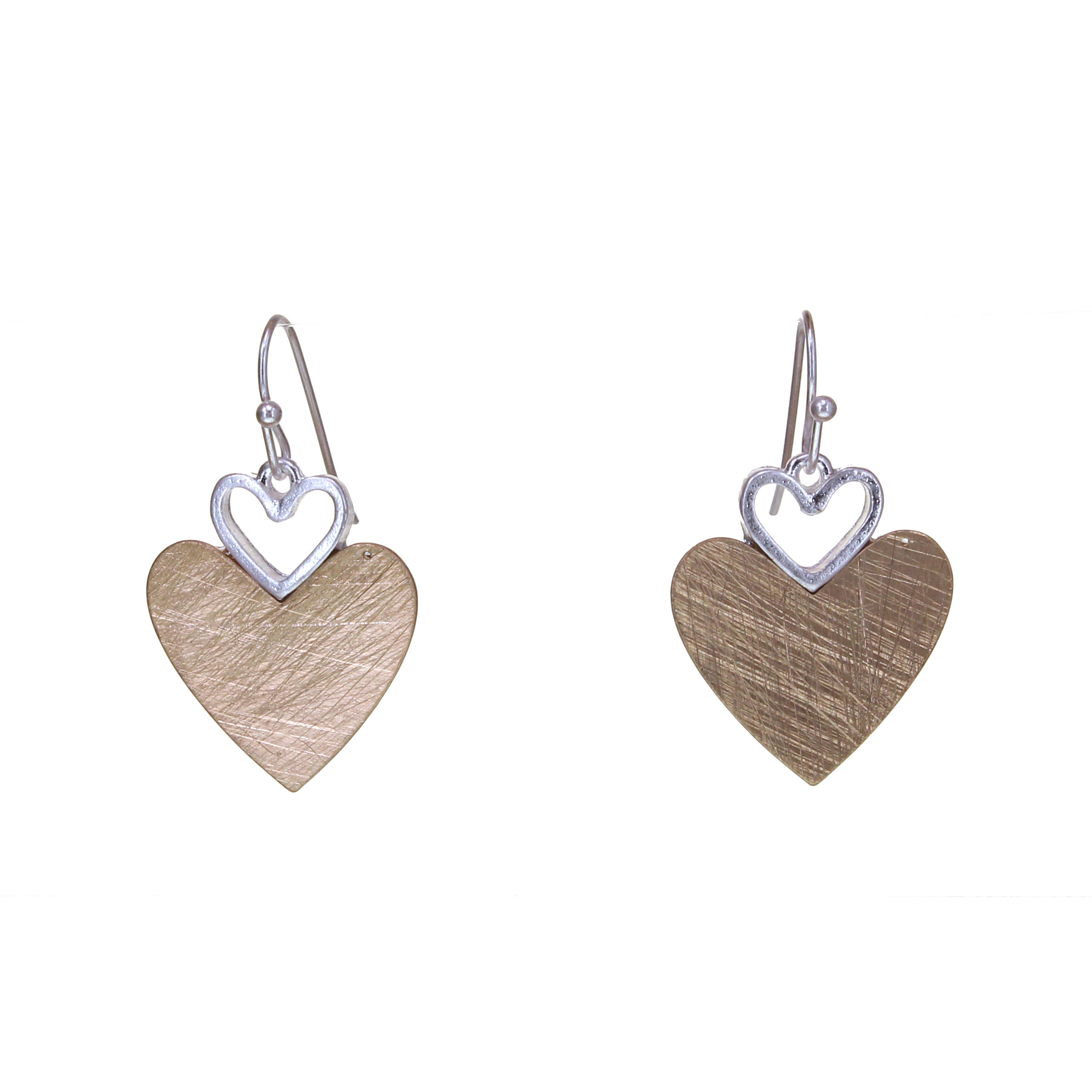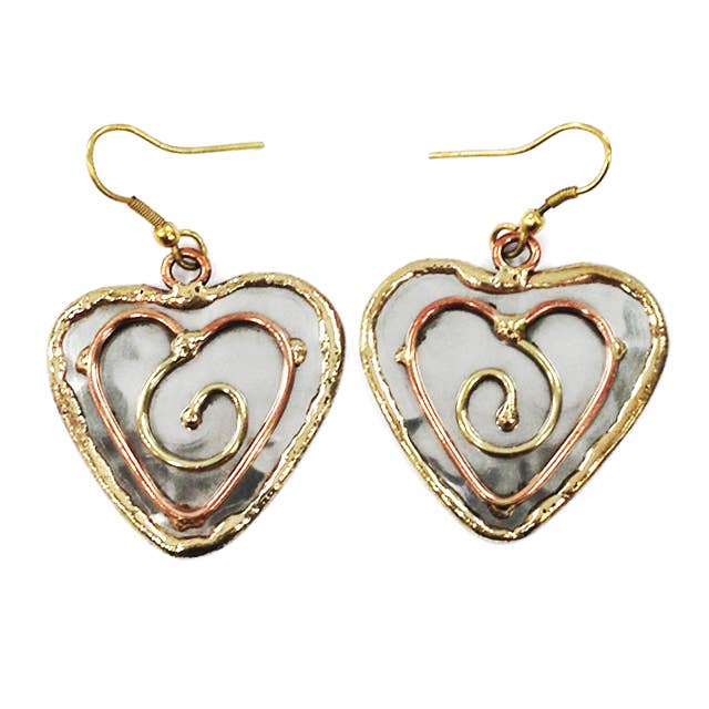 Boucle d'oreille délicate en métal à rayures bicolores en forme de cœur, 1 1/2 po