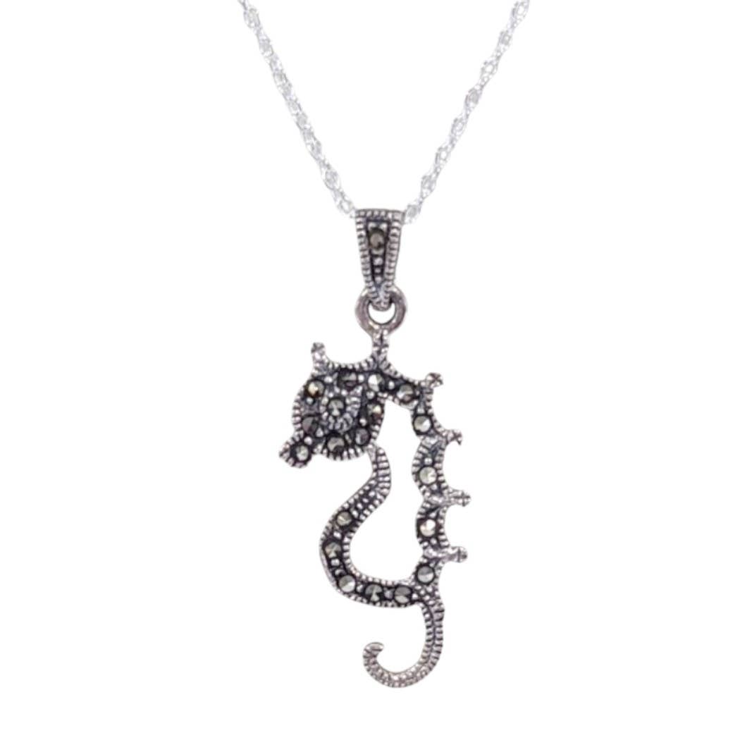 Collier en argent sterling Seahorse 4 mm Swarovski Gemstones™ CZ ** Collection en argent sterling — * 1 1/2 « po H 3/4 po » L x 1/8 po P (38 mm H x 19 mm l x 3 mm P) * Poids : 5,70 g. * Estampillé 925 * Chaîne en argent sterling de 18 pouces gratuite * Coffret cadeau et pochette à bijoux gratuits Le collier hippocampe en argent sterling est une pièce de haute couture avec une apparence époustouflante et percutante. Le collier hippocampe présente une présence organique avec des contours de garniture et un profil intemporel. Il mesure ¾ pouces de large sur 1 ½ pouce de haut. L'hippocampe est suspendu par un anneau à l'envers et mis en valeur sur une chaîne serpent de 18 pouces en argent sterling avec un fermoir à pince de homard. Les Swarovski Gemstones™ CZ de taille premium en Autriche, avec un éclat lumineux qui rivalise avec un diamant, rond de 4 mm, facetté et affleurant. Symbolisme : Les anciens Grecs et Romains considéraient l'hippocampe comme un symbole de force et de puissance.