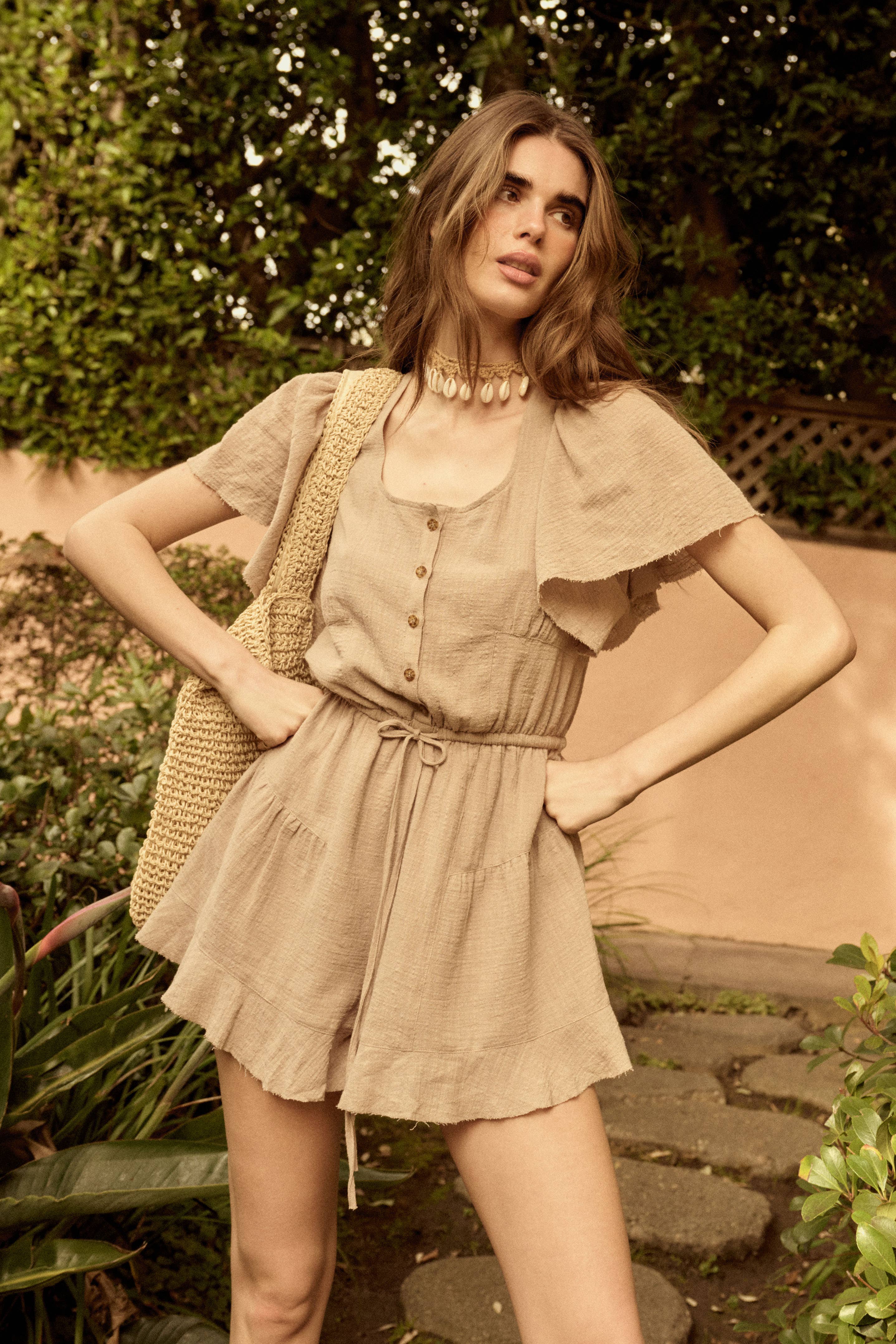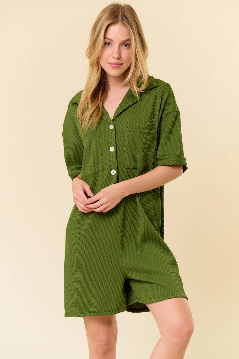 Barboteuse à col boutonné surdimensionné uni R5185