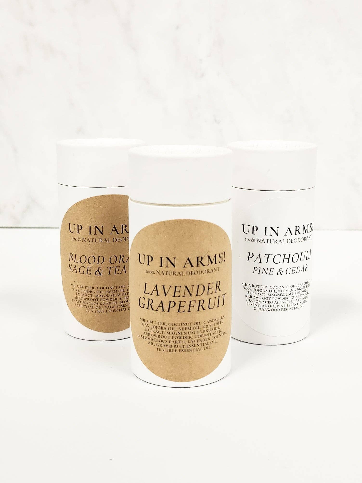 En Armes ! Déodorant Tout Naturel Ne jamais sentir mauvais ! Ce déodorant tout naturel s'applique en douceur et laisse vos aisselles soyeuses et fraîches toute la journée. Fabriqué avec du beurre de karité brut et non raffiné et des huiles de pépins de raisin et de neem soyeuses, notre déodorant pénètre facilement en profondeur dans votre peau, garantissant des heures de protection, de confort et d'effet antibactérien. Les huiles essentielles de patchouli, de cèdre et de pin se complètent de manière à garder vos aisselles aussi fraîches qu'une brise forestière. Notre déodorant En Armes ! a été testé en plein été en Louisiane et 9 aisselles sur 10 sont d'accord : c'est un sauveur ! Ingrédients : Beurre de Karité Brut Non Raffiné, Terre de Diatomées, Huile de Coco Brute Non Raffinée, Huile de Pépins de Raisin, Hydroxyde de Magnésium, Huile de Neem, Extrait de Pépins de Raisin, Poudre de Marante, Fécule de Maïs, Huile Essentielle de Patchouli, Huile Essentielle de Cèdre, Huile Essentielle de Pin