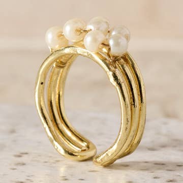 Bague dôme carré en perle blanche