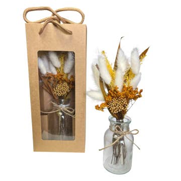 Les bouquets de fleurs séchées sont devenus un incontournable de la décoration intérieure. Ils ajoutent une touche magnifique à tout espace et peuvent être utilisés très longtemps, car ils sont durables et nécessitent peu d'entretien. Ils sont parfaits pour confectionner des couronnes décoratives ou comme décoration de table à la maison en les plaçant dans des vases tendance. Ils sont également parfaits comme décoration de mariage et peuvent également être utilisés comme cadeaux à vos proches. Ils constituent également d'excellentes décorations de gâteaux pour améliorer le design de votre gâteau en toute occasion. Le bouquet de fleurs séchées est composé d'un assortiment d'herbe de pampa séchée, de fleurs, de queues de lapin, de pointes de palmier, de ruscus, etc. Le bouquet peut être acheté seul ou avec le vase. De plus, le vase peut également être acheté seul sans bouquet. Le bouquet à lui seul mesure environ 17 pouces de long. Ce produit étant fabriqué à la main, veuillez tolérer de légères variations.