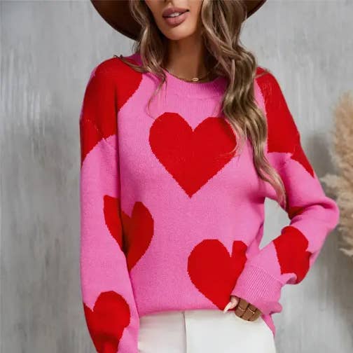 Pull à cœur contrasté de couleur pour la Saint-Valentin en vente B2B