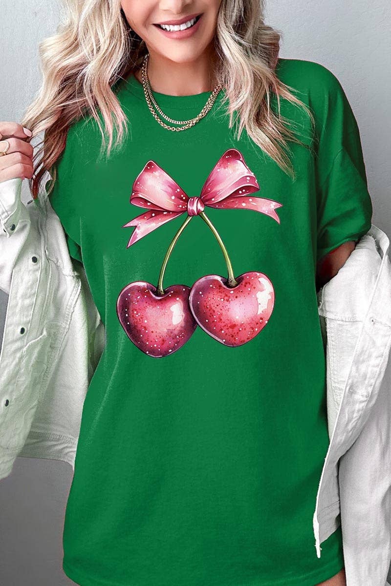 T-shirt graphique avec nœud rose bonbon et cerise en strass en vente B2B