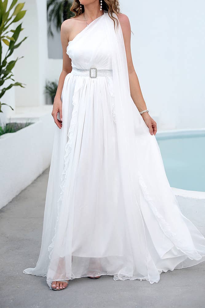 Simple et pourtant très élégante, cette robe de mariée grande taille vous mettra en valeur. Elle présente un décolleté en V plongeant, une silhouette évasée en ligne A, et est sans manches. Vous allez l’adorer !