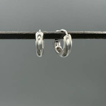 Boucles d'oreilles huggie en argent, fabriquées à partir de tubes pour un port léger. - Argent sterling massif - Fermeture à charnière qui se verrouille en place - Diamètre de 12 mm **Elles peuvent être portées sous la douche ou en nageant. Retirez-les uniquement pour nettoyer et polir afin de raviver leur éclat.