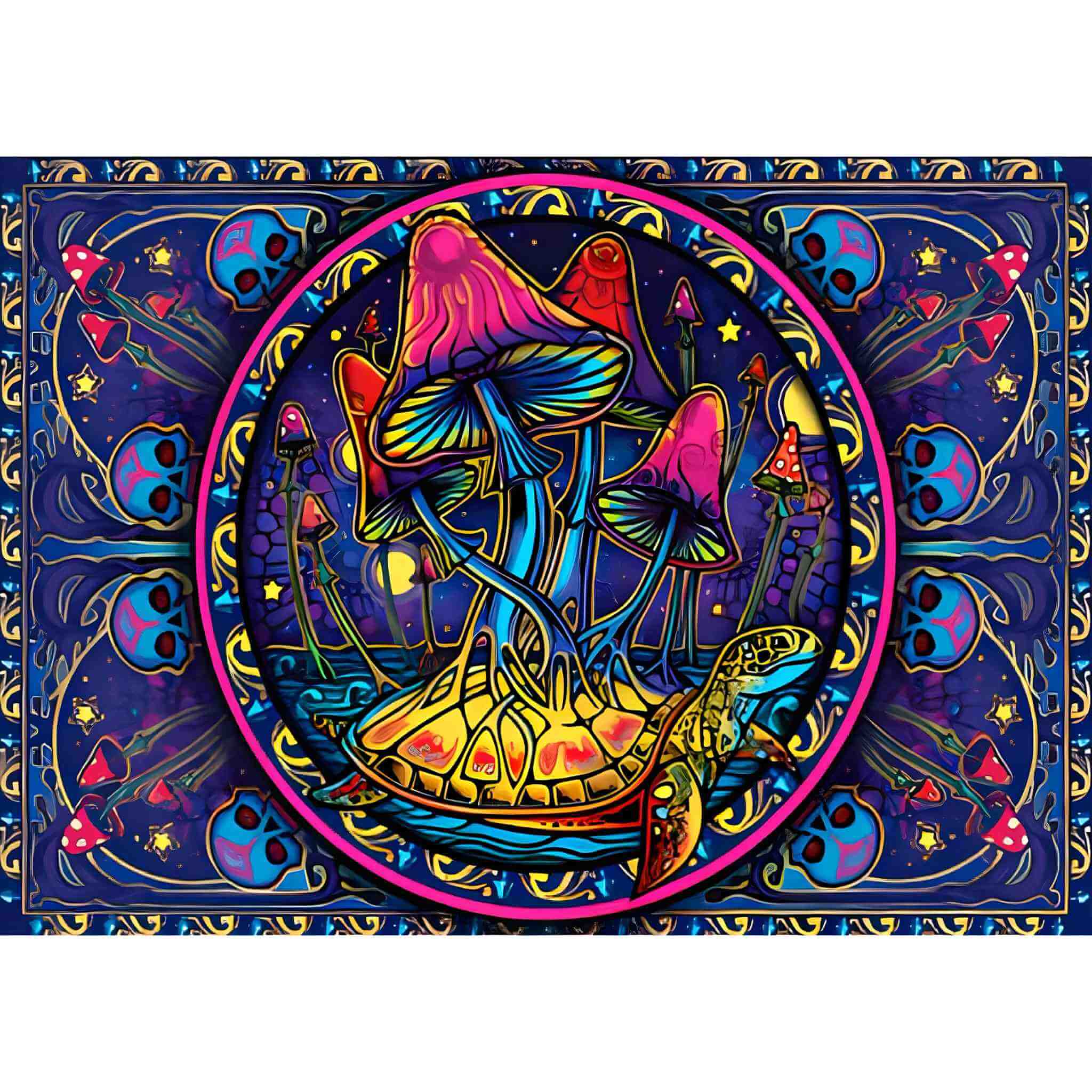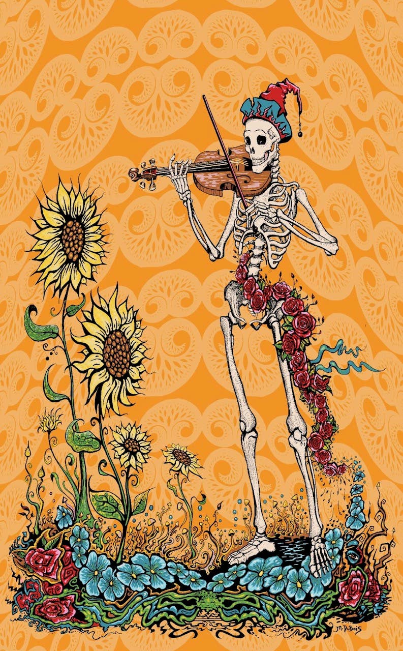 Attention aux contrefaçons ! Préparez-vous à profiter de l'ambiance groovy des Grateful Dead avec notre tapisserie Grateful Dead Dancing Bear Have A Grateful Day. Débordant de couleurs vives et vives, cette tapisserie est une célébration visuelle de la joie, de la paix et de l'esprit du mouvement hippie. Mettant en vedette les emblématiques ours dansants et le message édifiant « Have A Grateful Day », il vous rappelle qu'il faut répandre l'amour et la positivité partout où vous allez. Cette tapisserie est un produit Grateful Dead sous licence officielle, ce qui garantit son authenticité et son lien avec le riche héritage du groupe. Créée par Gypsy Rose, une marque connue pour ses designs uniques et originaux, cette tapisserie capture l'essence de la musique des Grateful Dead et la contre-culture libre d'esprit qu'elle représente.