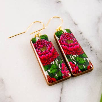 Boucles d'oreilles fleur rouge et feuille (or diamant) en vente B2B