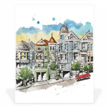 "Sur un coin dans The Mission" -Impression d'art giclée avec mon œuvre originale :) -Papier mat 300 GSM avec une texture subtile d'aquarelle -Imprimé par moi dans mon atelier d'art à domicile à Brooklyn, NY -toutes les impressions sont emballées dans des sacs en cellophane ajustés avec un insert en carton pour garder les impressions rigides
