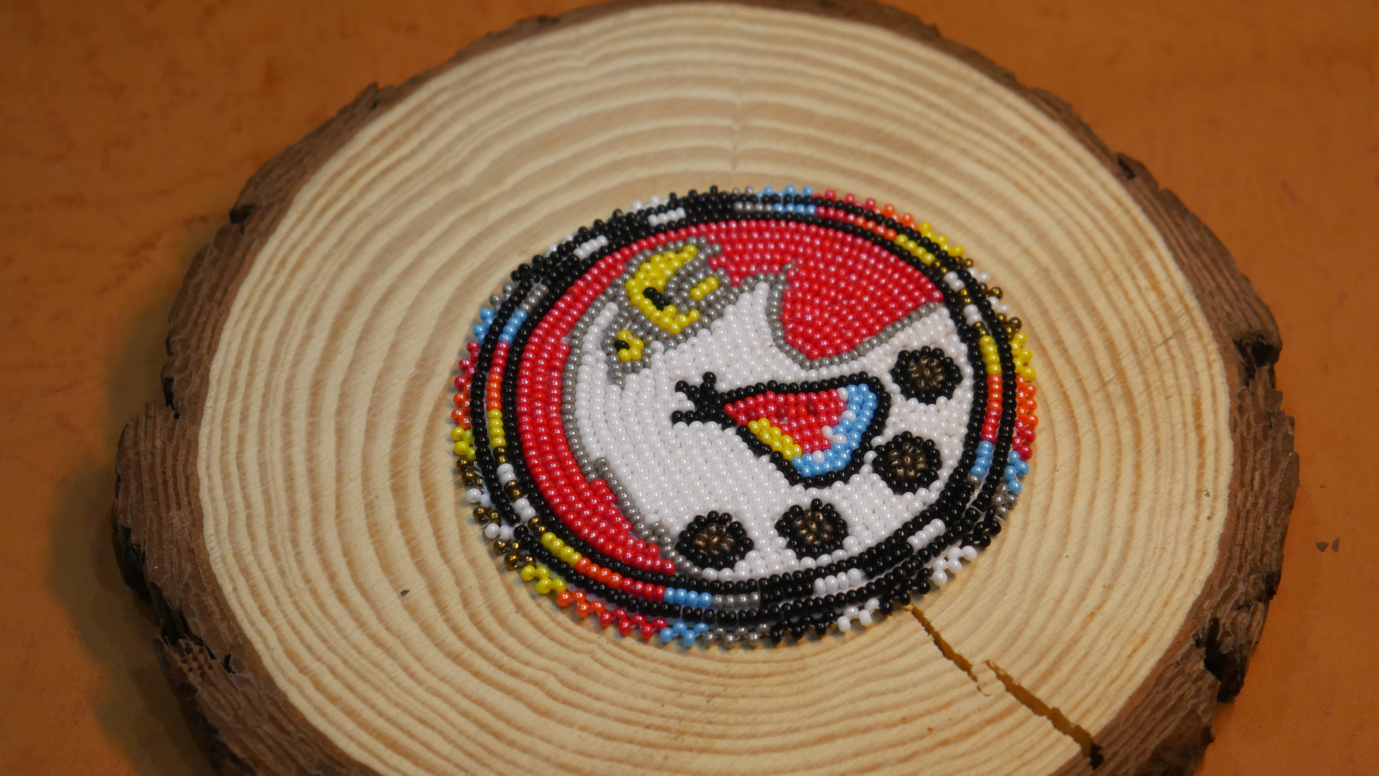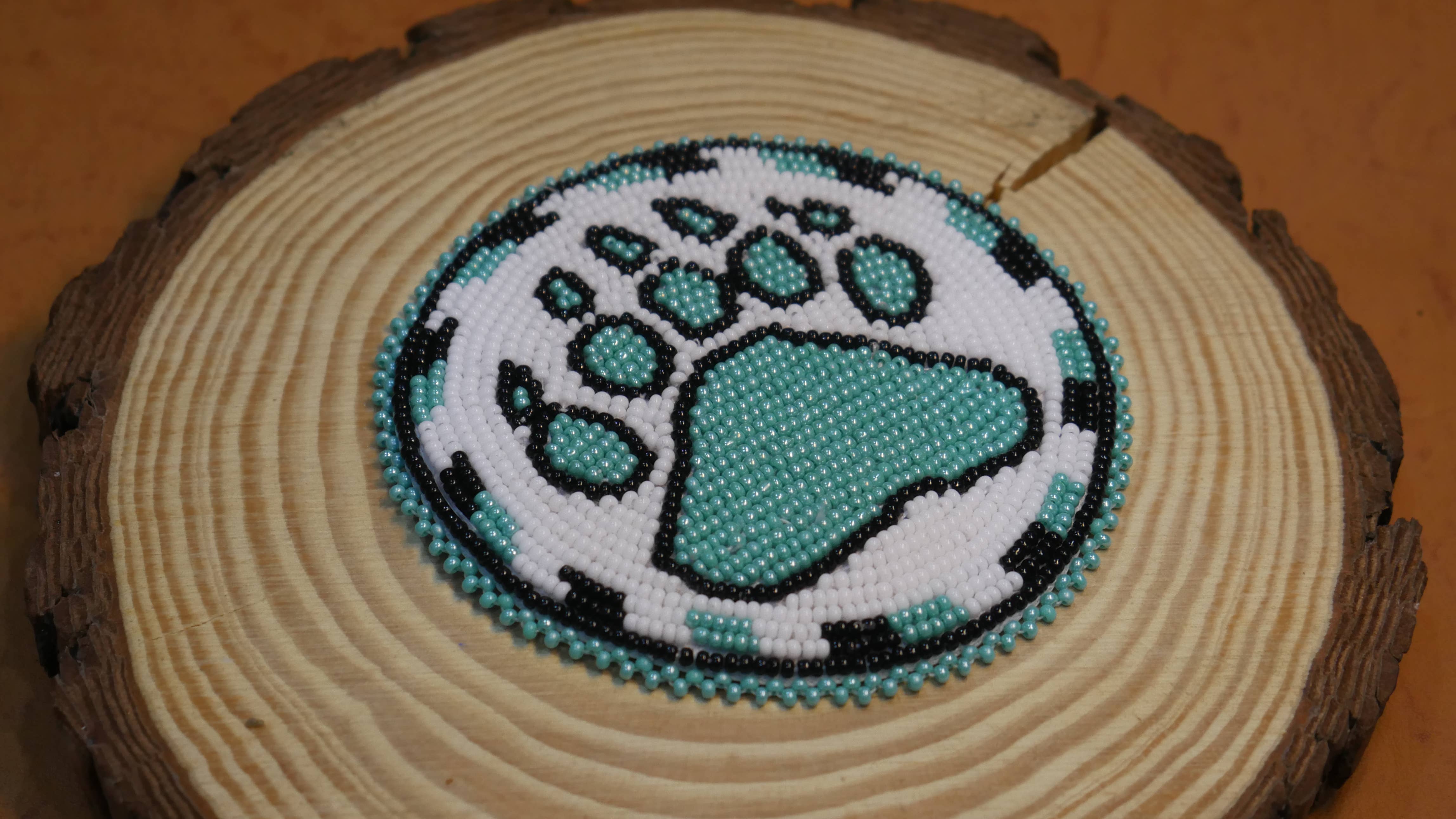 Collier médaillon perlé Patte d'Ours Blanc Amérindien en vente B2B