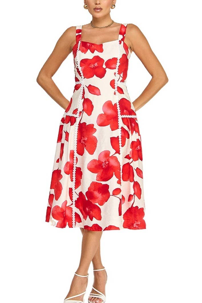 Robe d'été avec bretelles brodée 3D