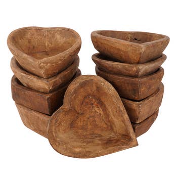 Le bol à pétrir en forme de cœur mesure environ 15 à 16,5 cm de long et de large, avec une profondeur de 5 à 6,5 cm. Ce bol est sculpté à la main en chêne espagnol. Ces bols en bois sont conçus pour avoir un aspect rustique à partir du bois brut. Ils peuvent présenter des nœuds, des rayures, des marques de couteau, des traces de lame de scie, de la sève, ainsi que des fissures ou imperfections mineures. Ce ne sont pas des défauts, mais des caractéristiques naturelles du bois brut utilisé. La taille, la couleur et la forme varient d'un bol à l'autre. Nous faisons de notre mieux pour minimiser ces marques, mais nous ne pouvons garantir l'absence totale de ces particularités. *Non garanti prêt à l'emploi pour bougies*