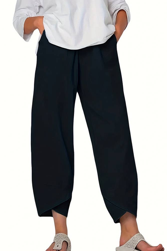 Pantalon cargo ample taille haute Tissu mélangé en coton uni Taille haute Taille élastique avec cordon de serrage Ample, jambe large Pantalon cargo Poches incluses Coupe régulière Importé Disponible en Noir & Kaki Taille du modèle 5' 9" portant la taille S/M Prendre soin de vos vêtements, c'est prendre soin de l'environnement Lavez vos vêtements à basse température et avec des cycles d'essorage délicats. Cela aide à maintenir la couleur, la forme et la structure du tissu. En même temps, cela réduit la consommation d'énergie utilisée dans les processus d'entretien.