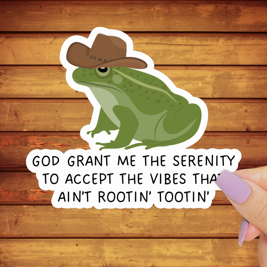 Yee-haw ! Cowboy Frogson est en ville avec des bottes, un chapeau et un étui. Ce sticker est un clin d'œil au Far West, avec une touche de grenouille. Idéal pour ceux qui aiment leurs cowboys verts et leurs duels sympathiques. Informations sur ce produit : - Matériau : vinyle mat épais et de qualité supérieure. - Caractéristiques : imperméable, résistant aux intempéries, résistant aux rayures et résistant au lave-vaisselle. - Dessiné à la main et expédié depuis les États-Unis. - Garantie à vie : si cet autocollant se décolle ou se décolore après une utilisation régulière, nous le remplacerons gratuitement.