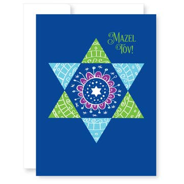 Salut : « Mazel Tov ! » (Intérieur vide) Impression : feuilles bleues Taille de la carte : 5,5 pouces x 4,25 pouces, pliée Papier : papier coloré avec enveloppe A2 coordonnée